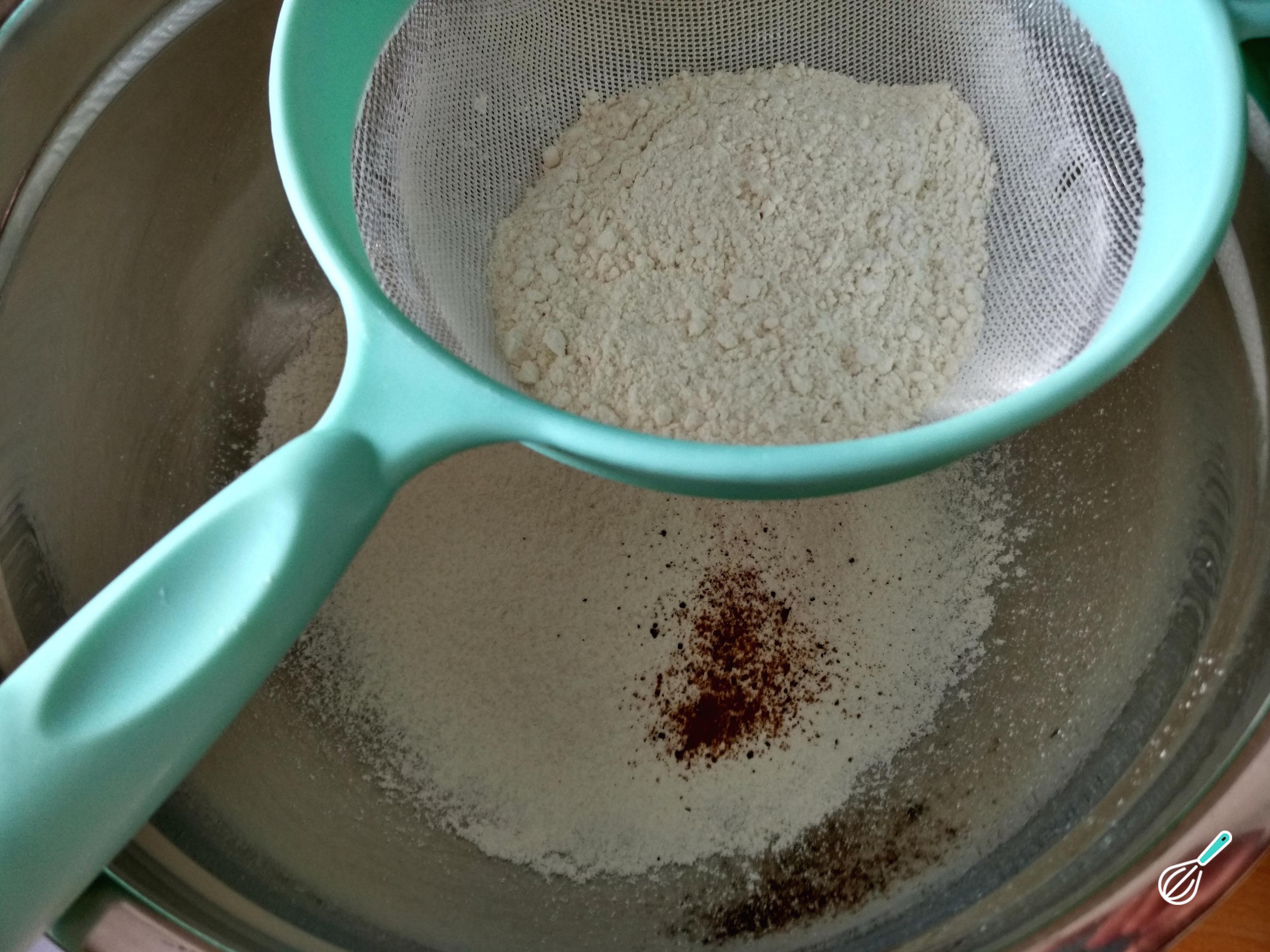 Peneire a farinha juntamente com o fermento, o sal e a noz-moscada em pó.