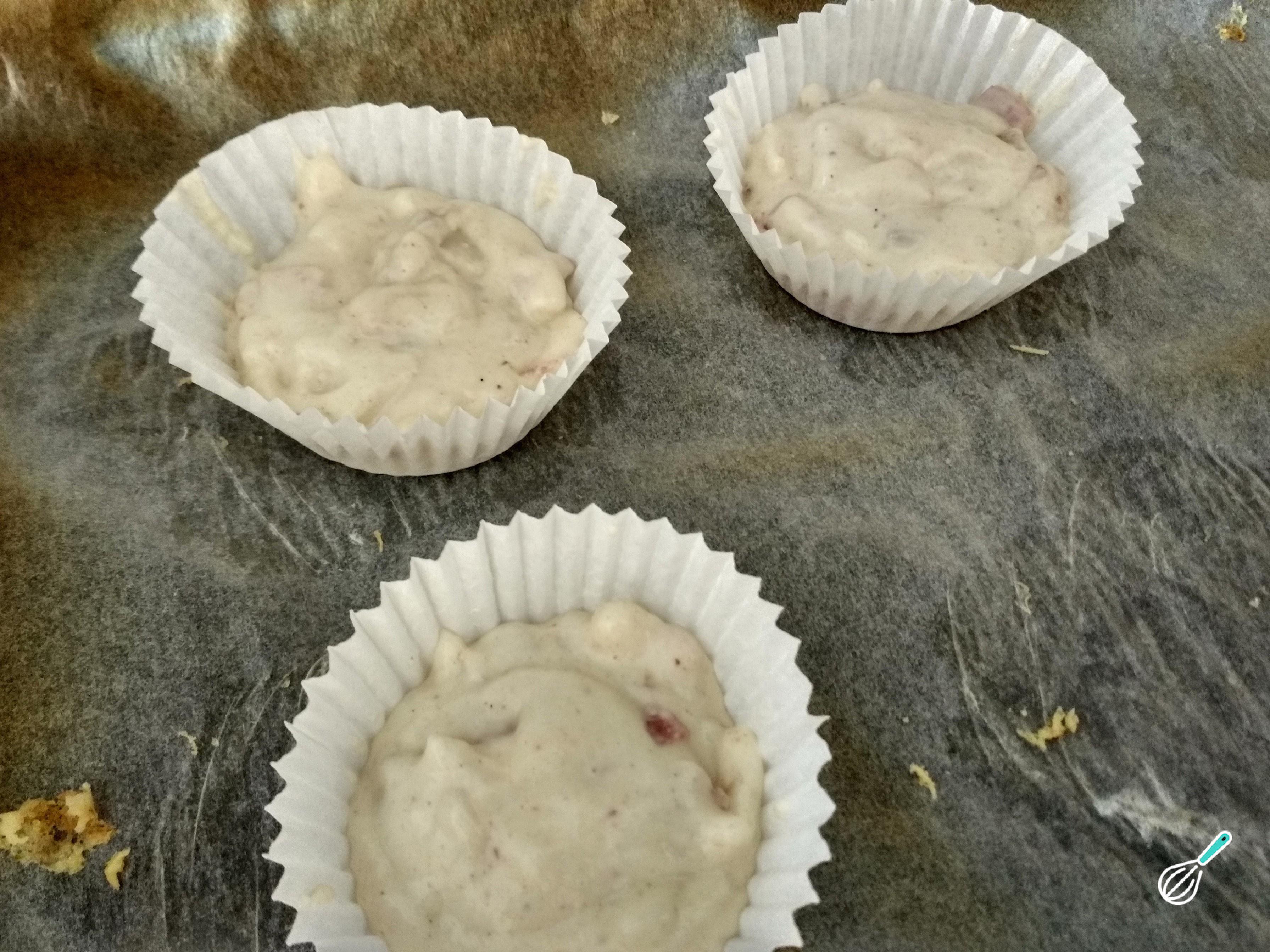Encha as forminhas pela metade e coloque os muffins salgados no forno a 180 ° C durante 20-25 minutos.