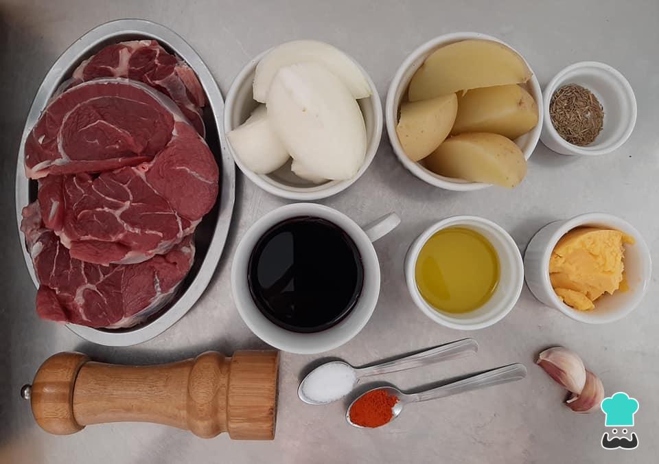 Separe todos os ingredientes necessários para preparar a sua receita de músculo assado no forno. Você pode cortar o músculo em medalhões ou deixá-lo inteiro, como preferir.