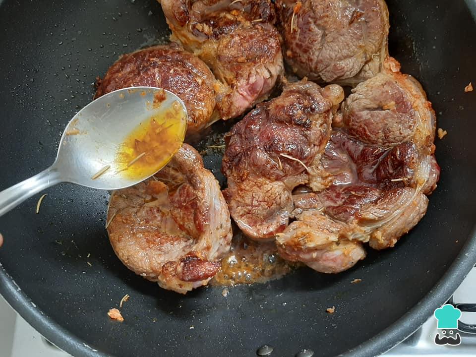 Vire o lado da carne e deixe selar por mais 3 minutos. Enquanto isso, regue o músculo com o caldinho da frigideira. Retire-o da frigideira e acomode-o em um refratário.