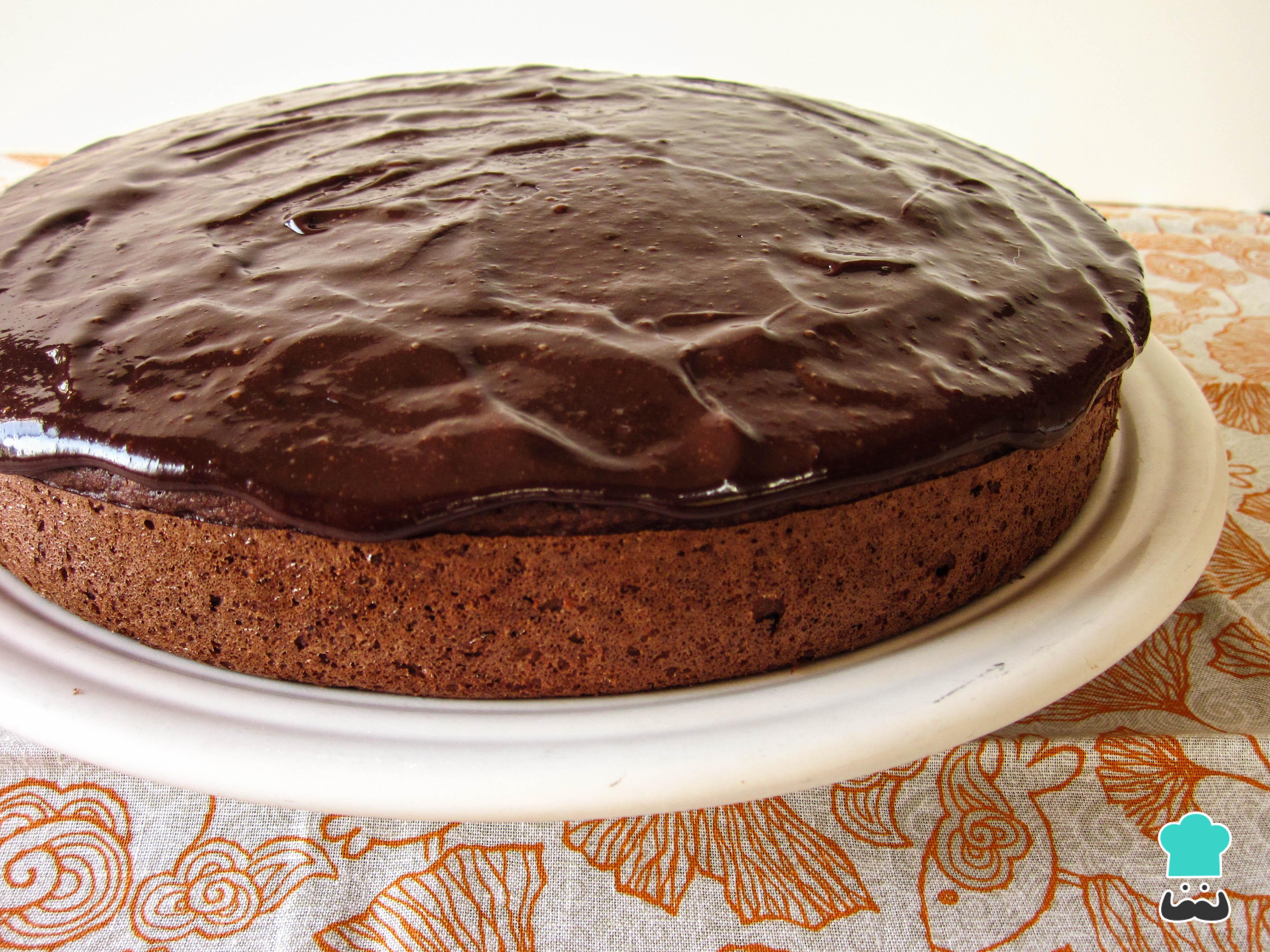 Para fazer a cobertura, coloque o açúcar mascavo, a água e o cacau em uma panela e leve ao fogo até engrossar. Fure a massa com um garfo e despeje a cobertura sobre ela.