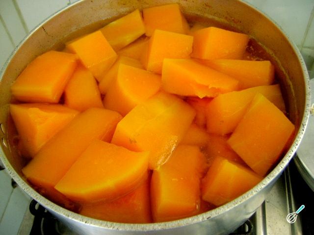 Dica: como alternativa também pode cozinhar a abóbora no vapor, assim ela pega menos água.
