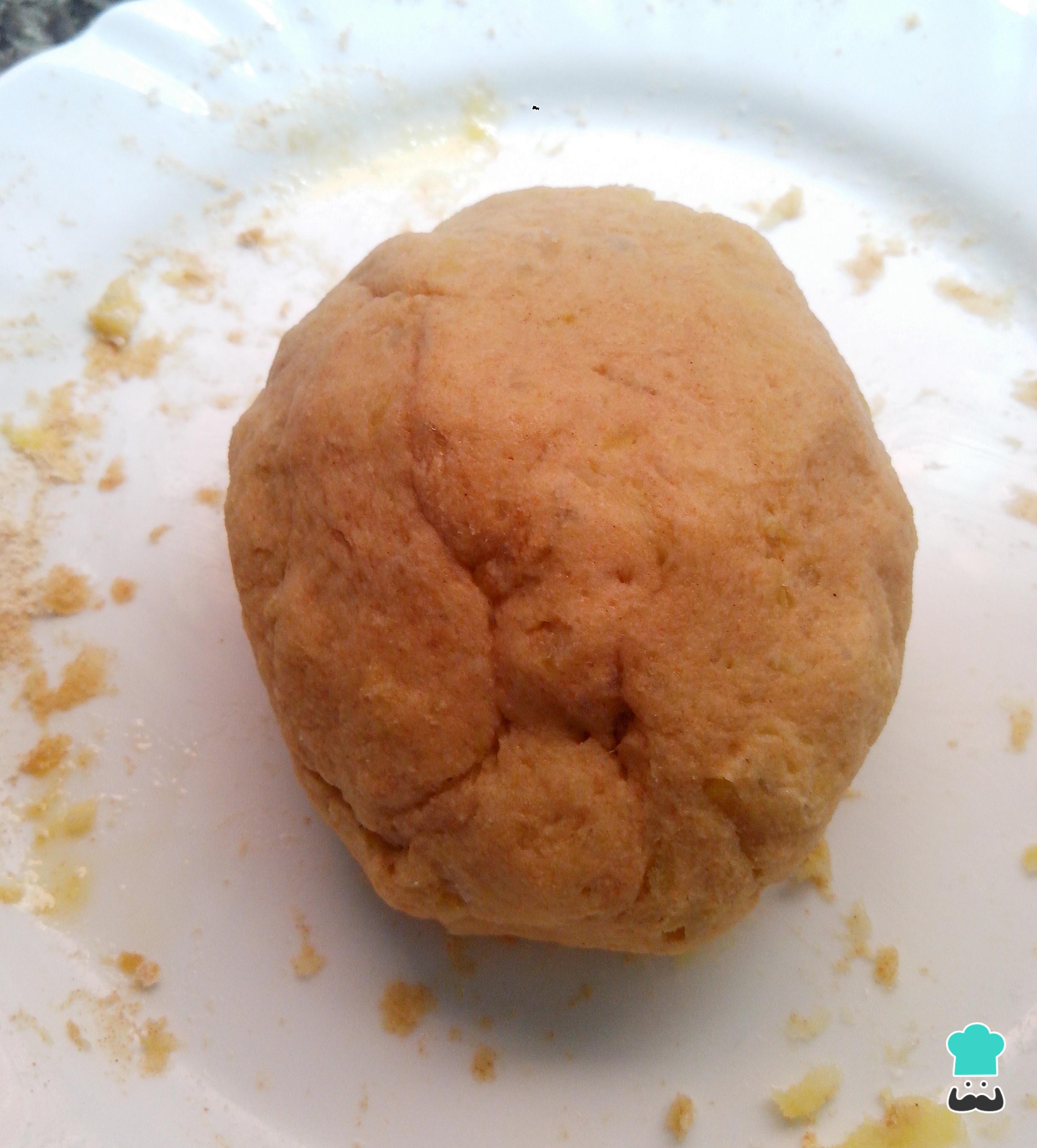 Amasse à mão até virar uma massa suave e compacta. Se ainda estiver mole, adicione um pouco mais de farinha.