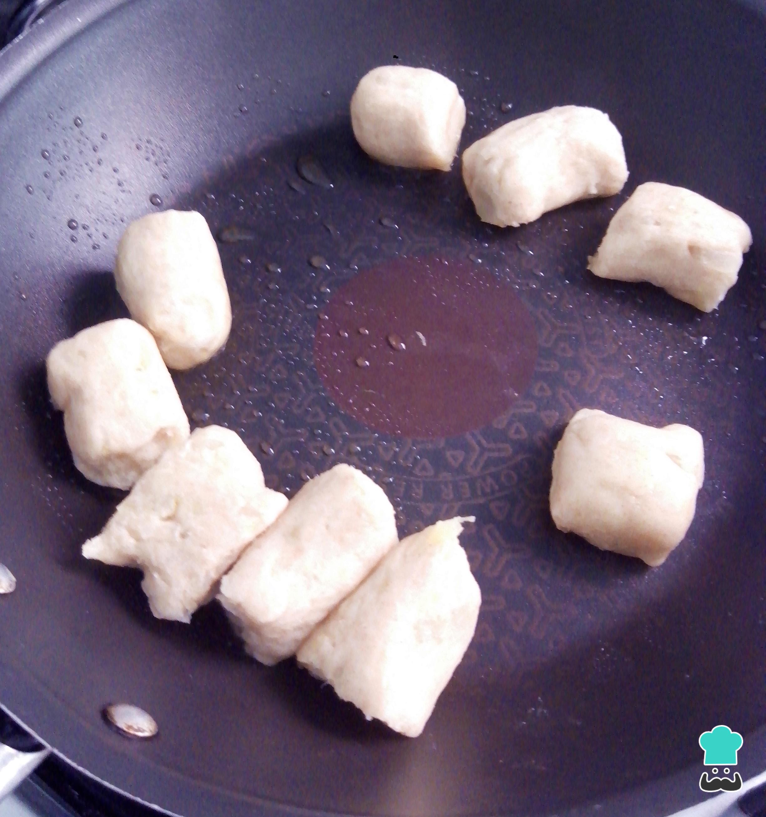 Por fim, unte uma frigideira com azeite e doure o nhoque de todos os lados.