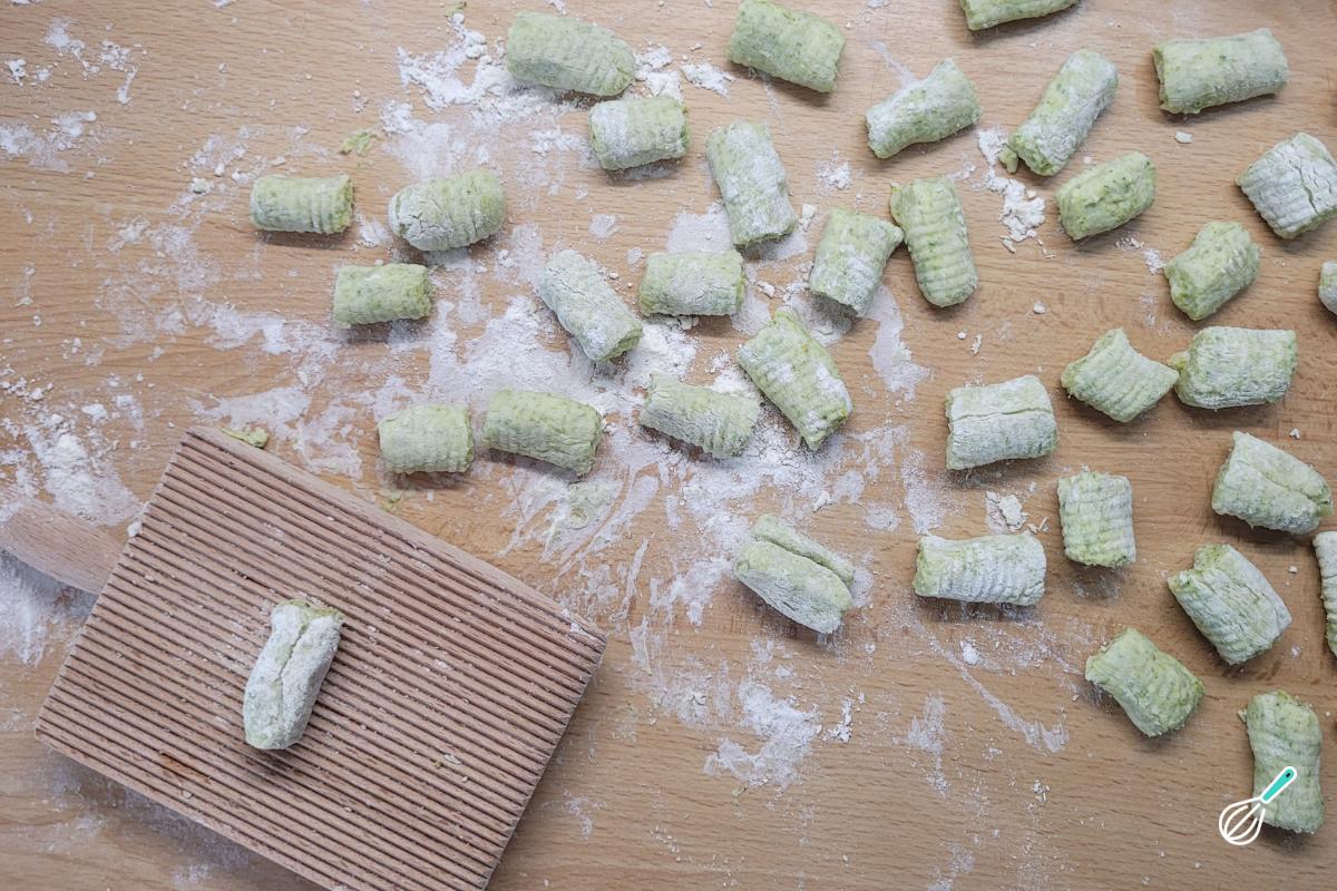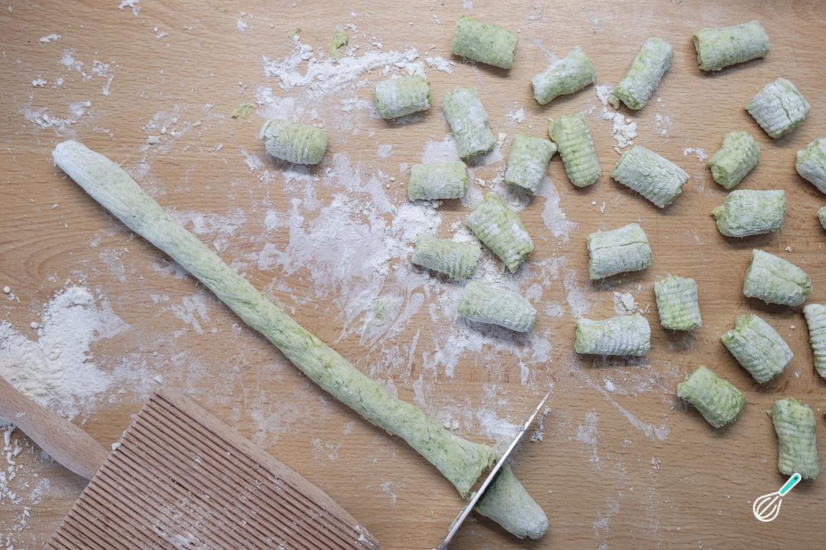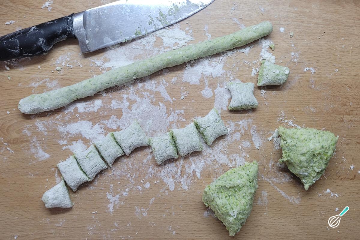 Agora, você pode optar como modelar os nhoques. Uma opção é deixá-los dessa forma mais rústica ou fazer bolinhas.