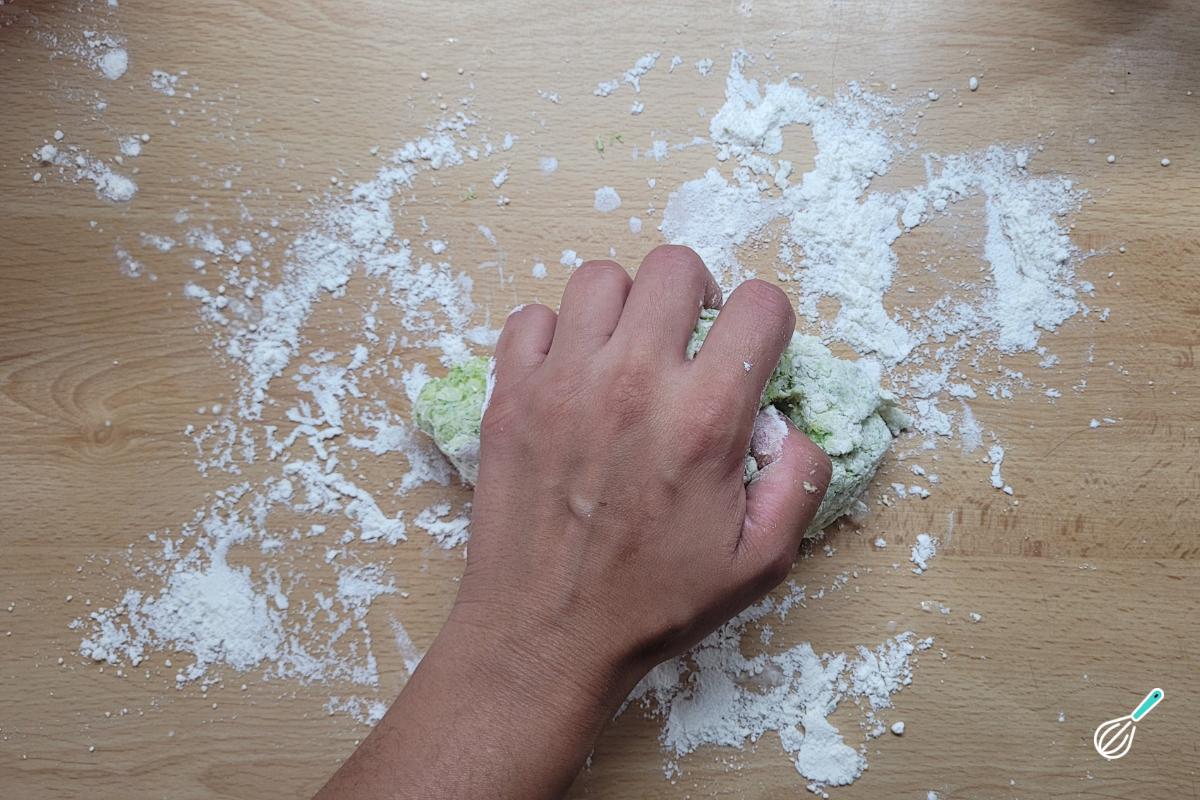 O objetivo é chegar em uma massa lisa e que não grude nas mãos.
