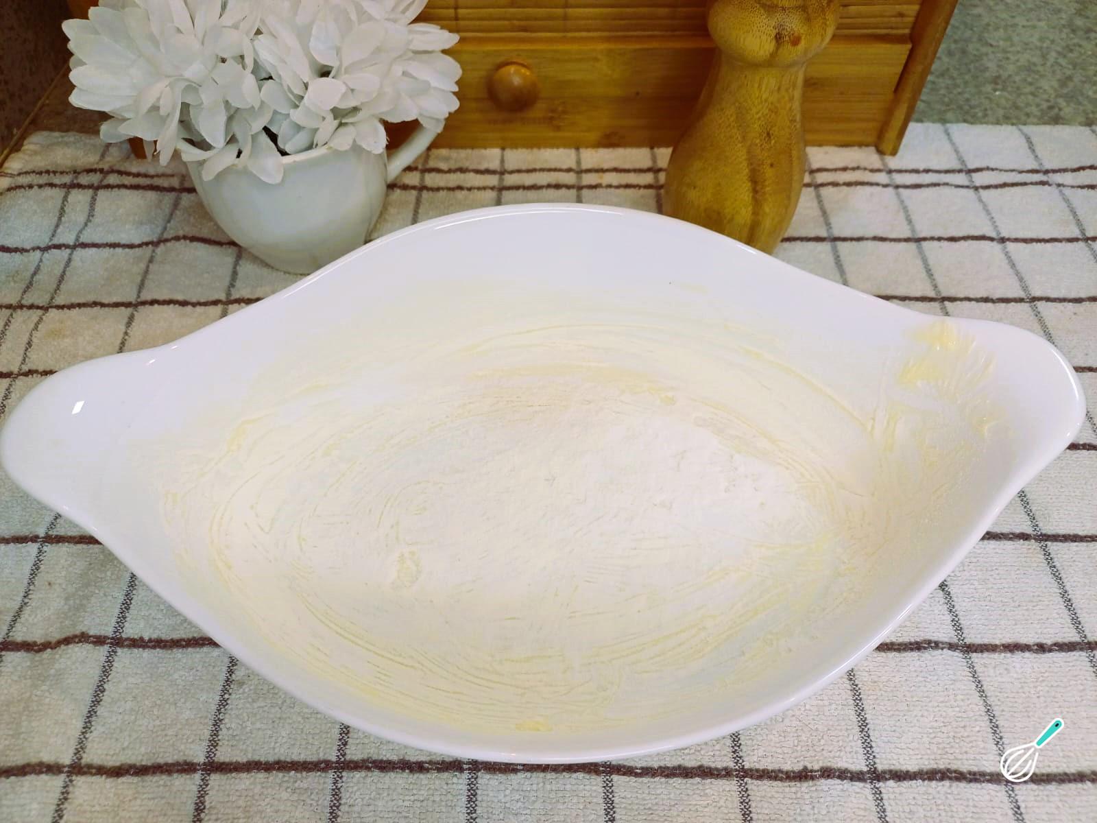 Unte uma assadeira ou travessa refratária média com manteiga e polvilhe farinha de trigo.