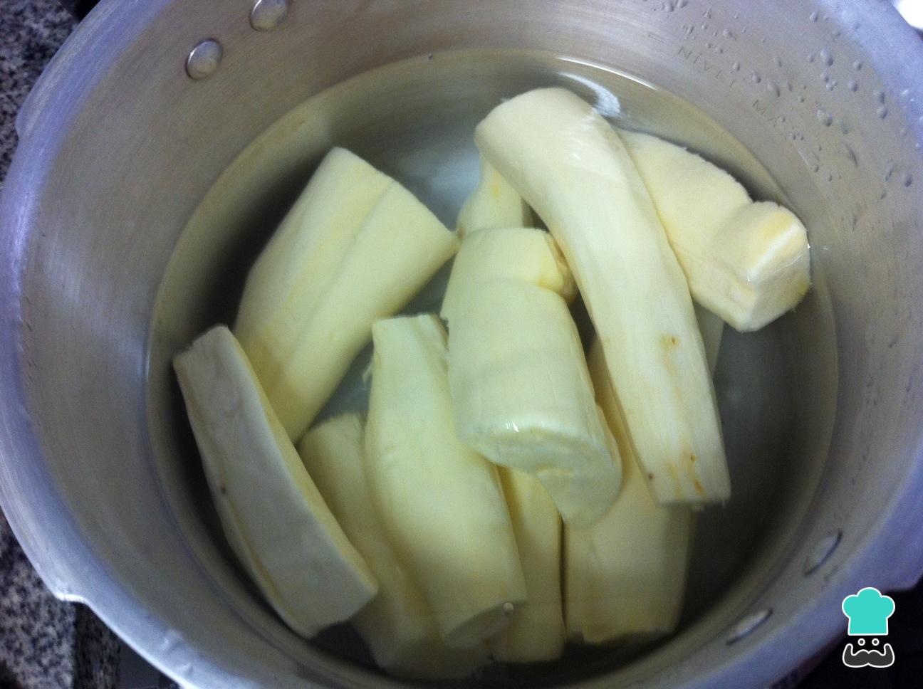 Para preparar o nhoque de mandioca a primeira coisa a fazer é descascar a mandioca, cortar em pedaços e cozinhar numa panela com água em fogo médio. Escorra quando a mandioca estiver bem macia e deixe amornar.