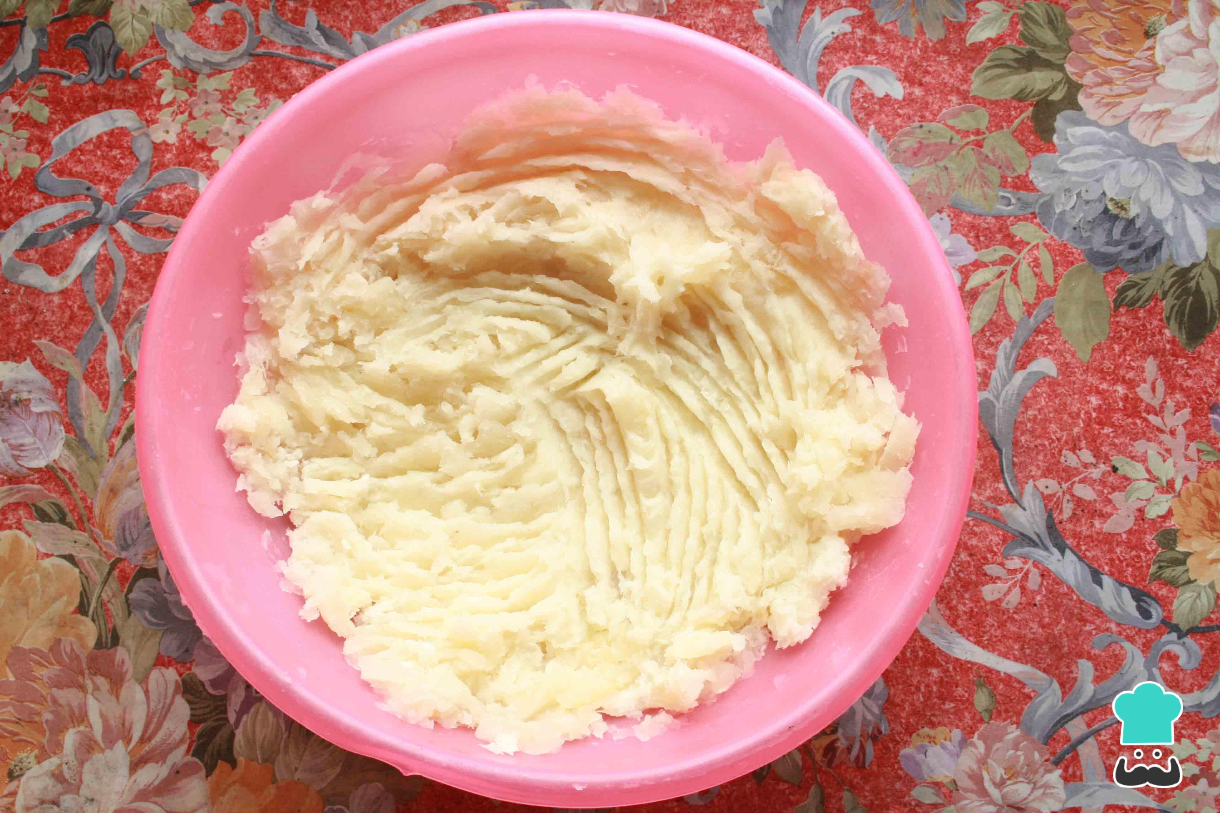 Quando a mandioca estiver bem cozida escorra a água e amasse até virar um purê sem grumos. A quantidade de purê deve ser cerca de 2 xícaras.