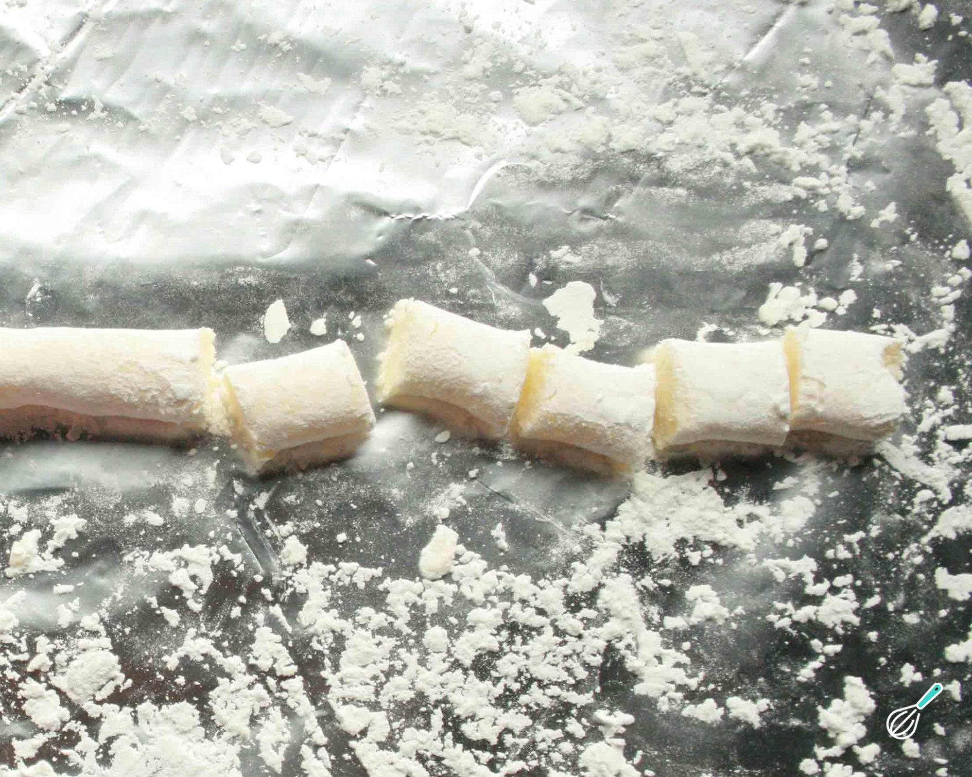 Dica: Polvilhe a massa com maisena, para evitar que grude.