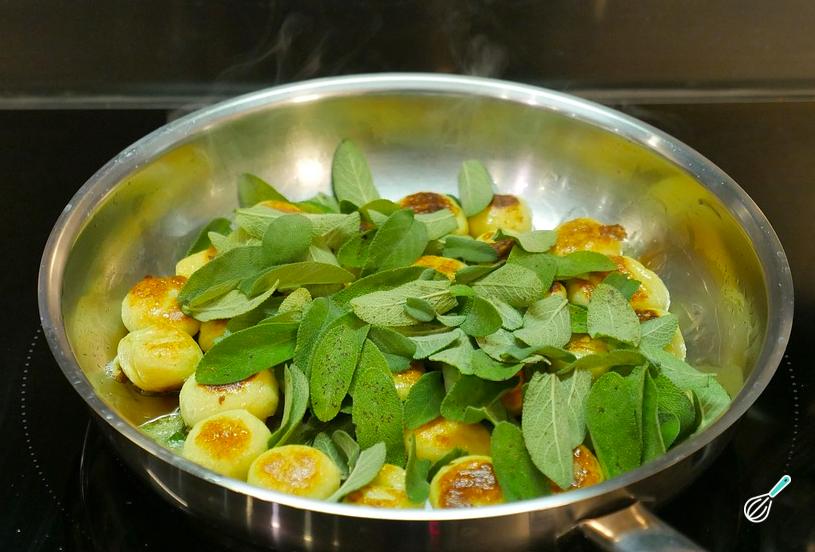 Em uma frigideira adicione a manteiga e a sálvia. Quando a manteiga derreter e as folhinhas de sálvia estiverem douradinhas, coloque as bolinhas de nhoque para fritar. E, prontinho! Maravilhoso né? Conta para a gente o que você achou do sabor dessa bolinha de tapioca e, claro, compartilhe uma foto do resultado.
