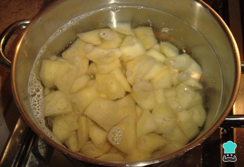 Deixe as batatas cozendo durante cerca de 15 minutos, ou até que estejam moles. Após esse tempo escorra a água e transforme-as em puré com um garfo ou com um espremedor.