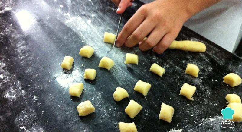 Sobre uma superfície lisa, limpa e enfarinhada, coloque a massa e molde-a em tiras compridas. Corte pedaços de 1,5 cm cada um e terá seus nhoques crus!