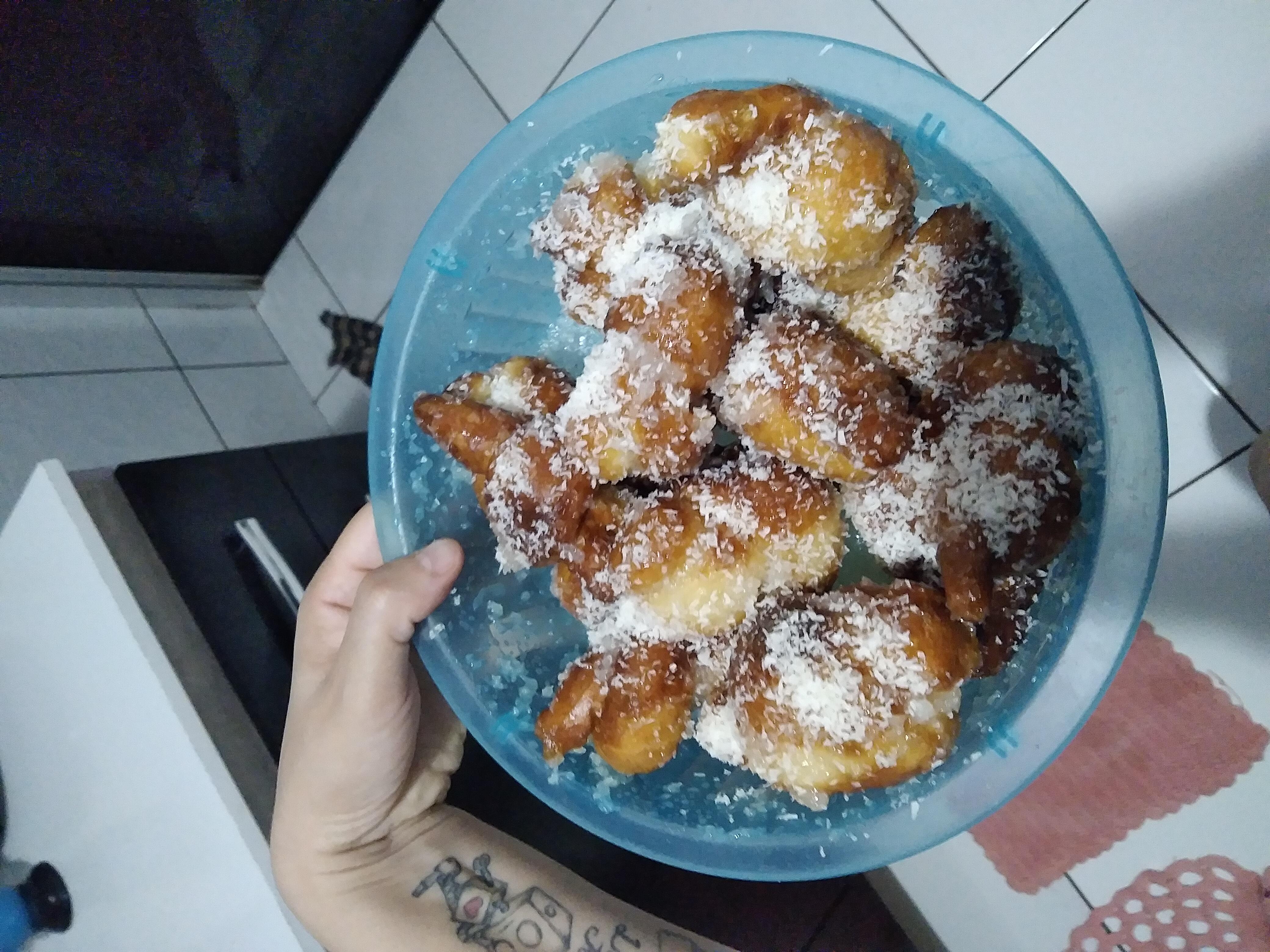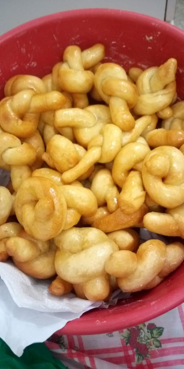Após o passo anterior, os nozinhos fritos, espera marido, nó-de-sogra ou bolinhos de nó estão prontos! Coloque em uma assadeira ou prato de servir, adicione a calda e desfrute desta receita incrível. Diga nos comentários o que achou, vamos gostar de saber!