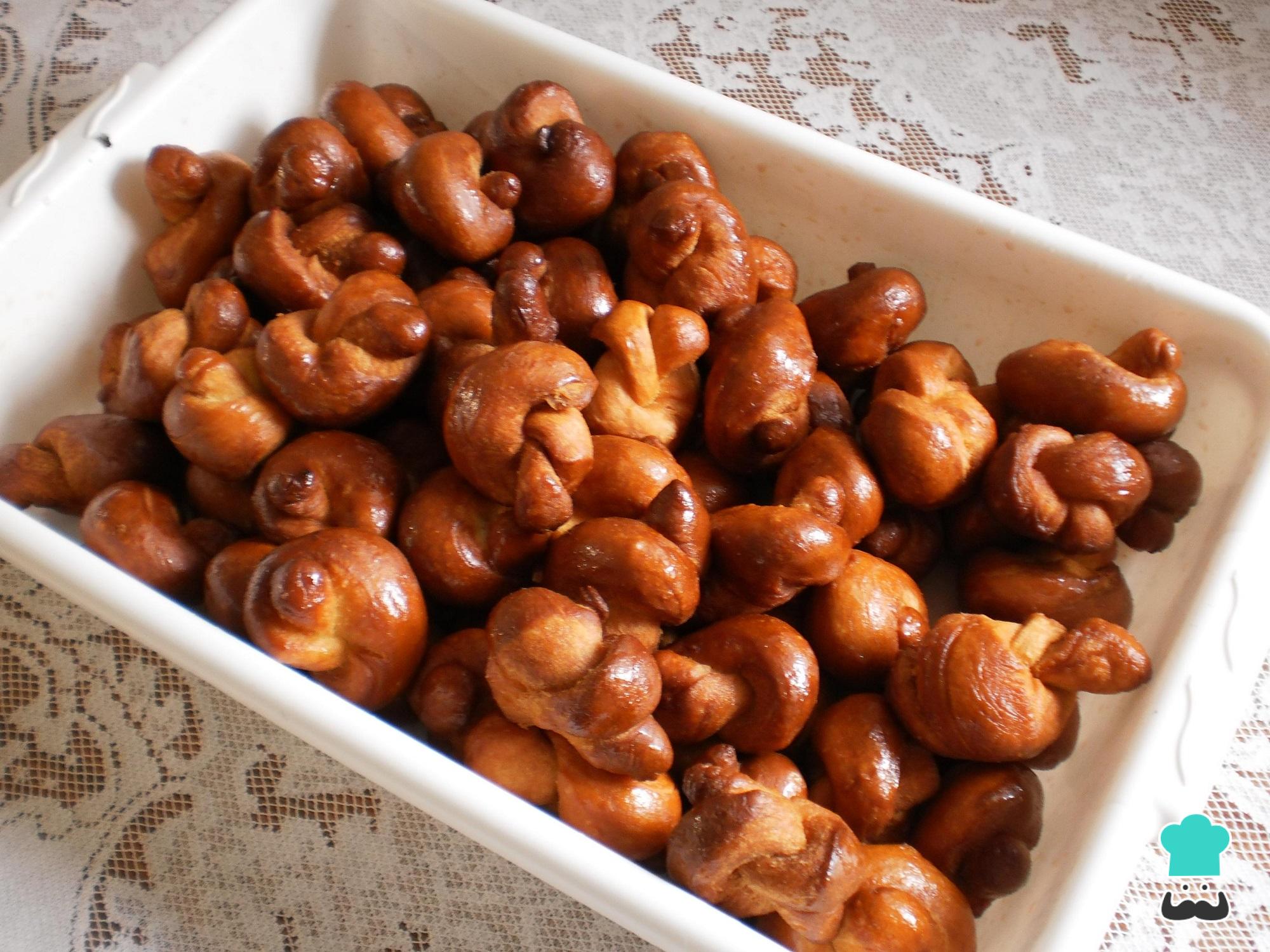 Esquente o óleo para fritar e, quando estiver quente, frite alguns nozinhos de cada vez, até ficarem dourados. Coloque os nozinhos fritos escorrendo o excesso de óleo numa paneira ou em papel absorvente.