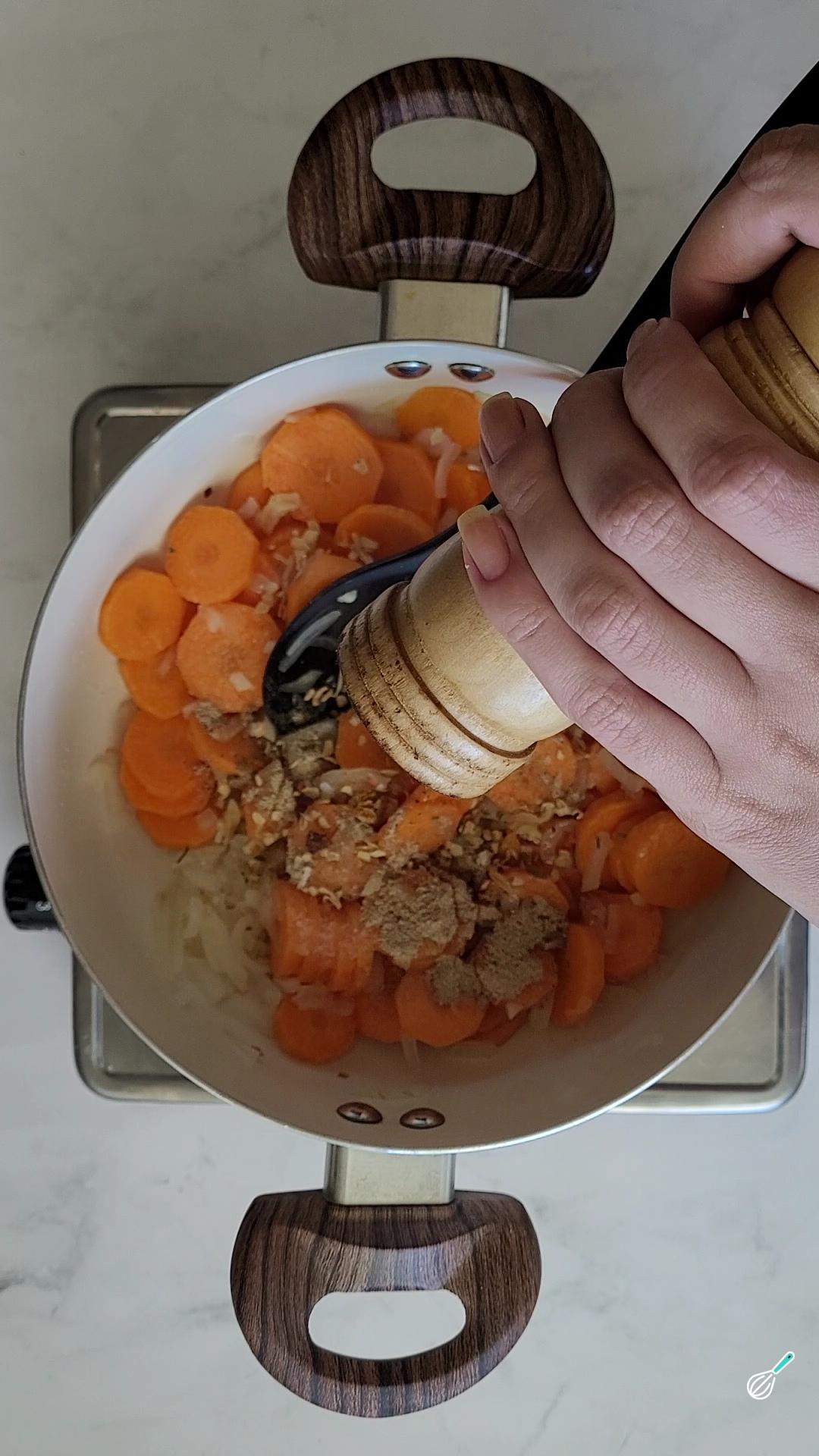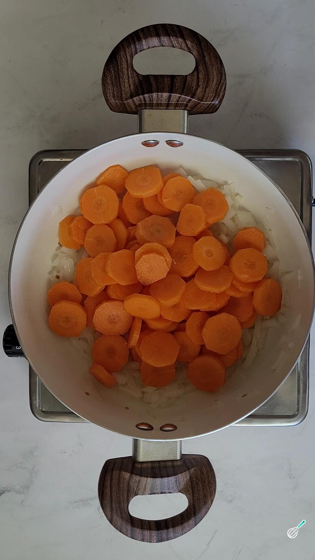 Aqui, eu não quis deixar a cenoura cozinhando por muito tempo porque, ao triturá-la, queria que ficassem pedacinhos. Mas, se você quiser uma massa mais lisa e homogênea, pode deixar cozinhar por uns 10 minutos ou até que consiga espetar com um garfo e retirá-lo com facilidade.
