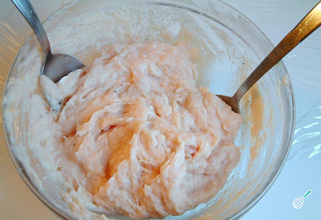 Coloque a farinha de rosca em um recipiente fundo. Com uma colher, pegue uma porção da pasta e passe na farinha. De seguida, modele o nugget de frango com as mãos. Repita até usar toda a pasta.