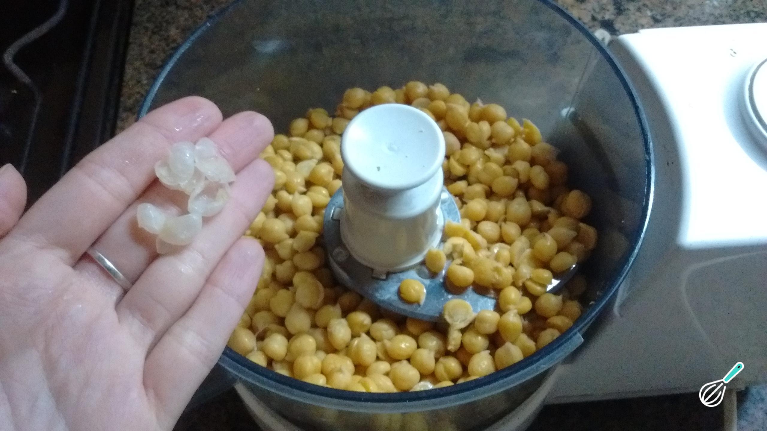 Pode usar grão-de-bico em conserva pronto a usar deixa de molho com água suficiente para o cobrir durante 12 horas, mudar a água e cozinhá-lo cerca de 30 minutos até ficar macio. Retire a casca que os cobre para uma melhor digestão e consistência da preparação.