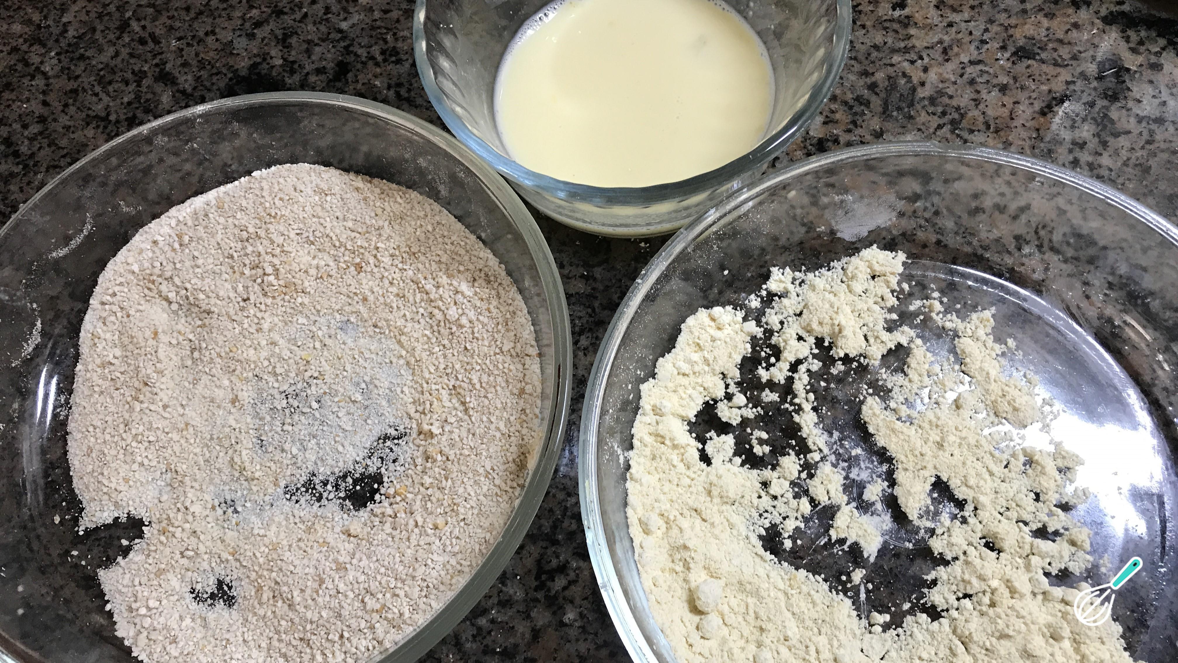 Dica: Se você não quiser usar ovo por ser vegano, pode usar bebida vegetal. Você também pode substituir a farinha de rosca por panko, aveia, sementes ou polenta.