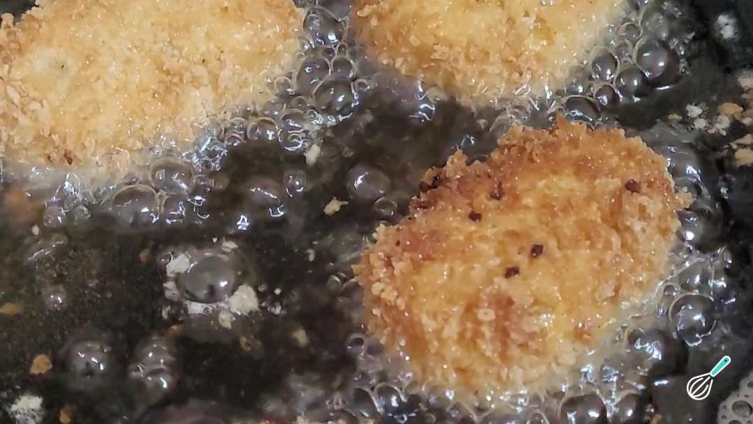 Esquente o óleo e, quando estiver quente, coloque os nuggets para fritar.