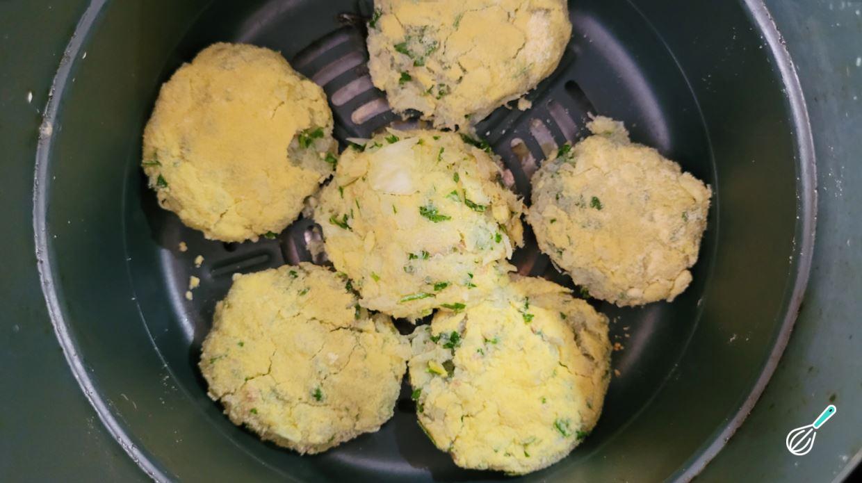Se necessário, faça em etapas. Deixe na airfryer a 180oC por 15 minutos até ver que estão dourados e com uma casquinha crocante por fora.
