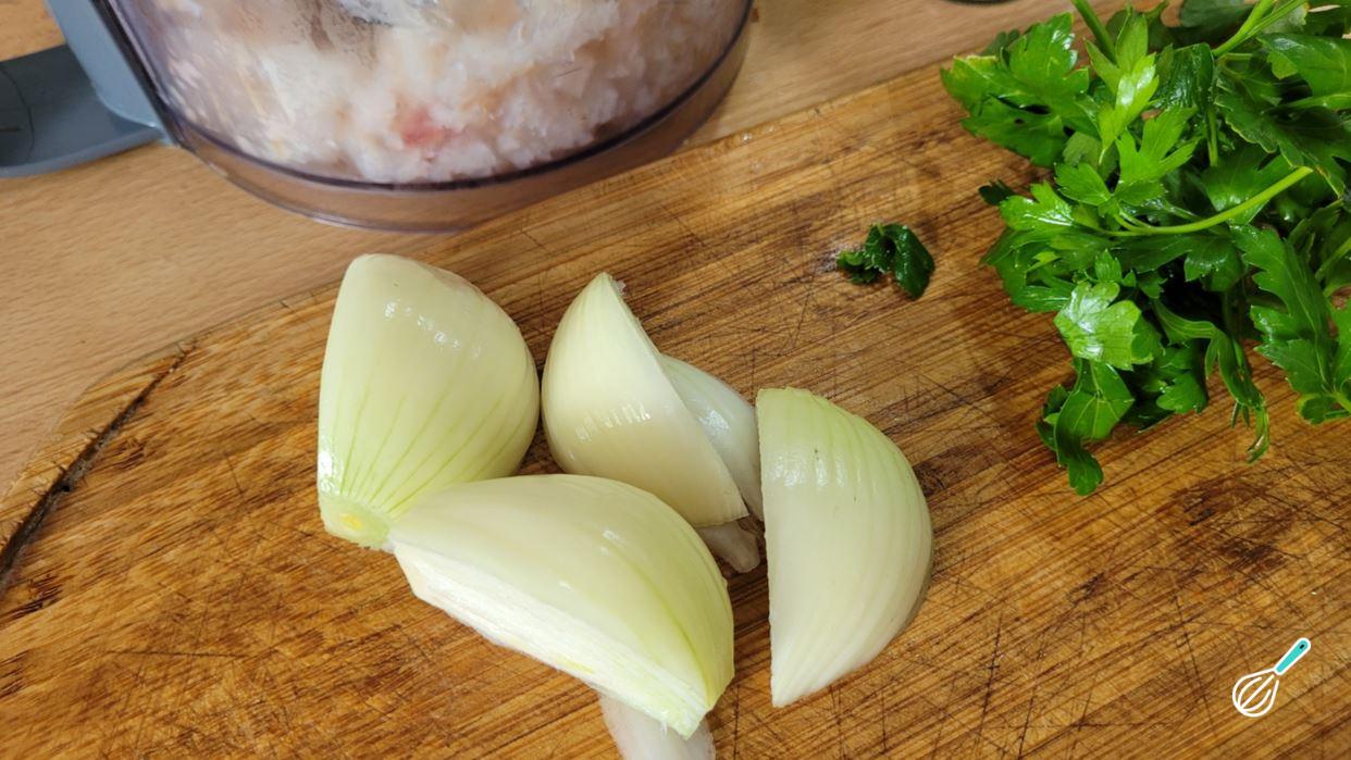 Descasque e corte a cebola em pedaços menores, apenas para facilitar na hora de bater.