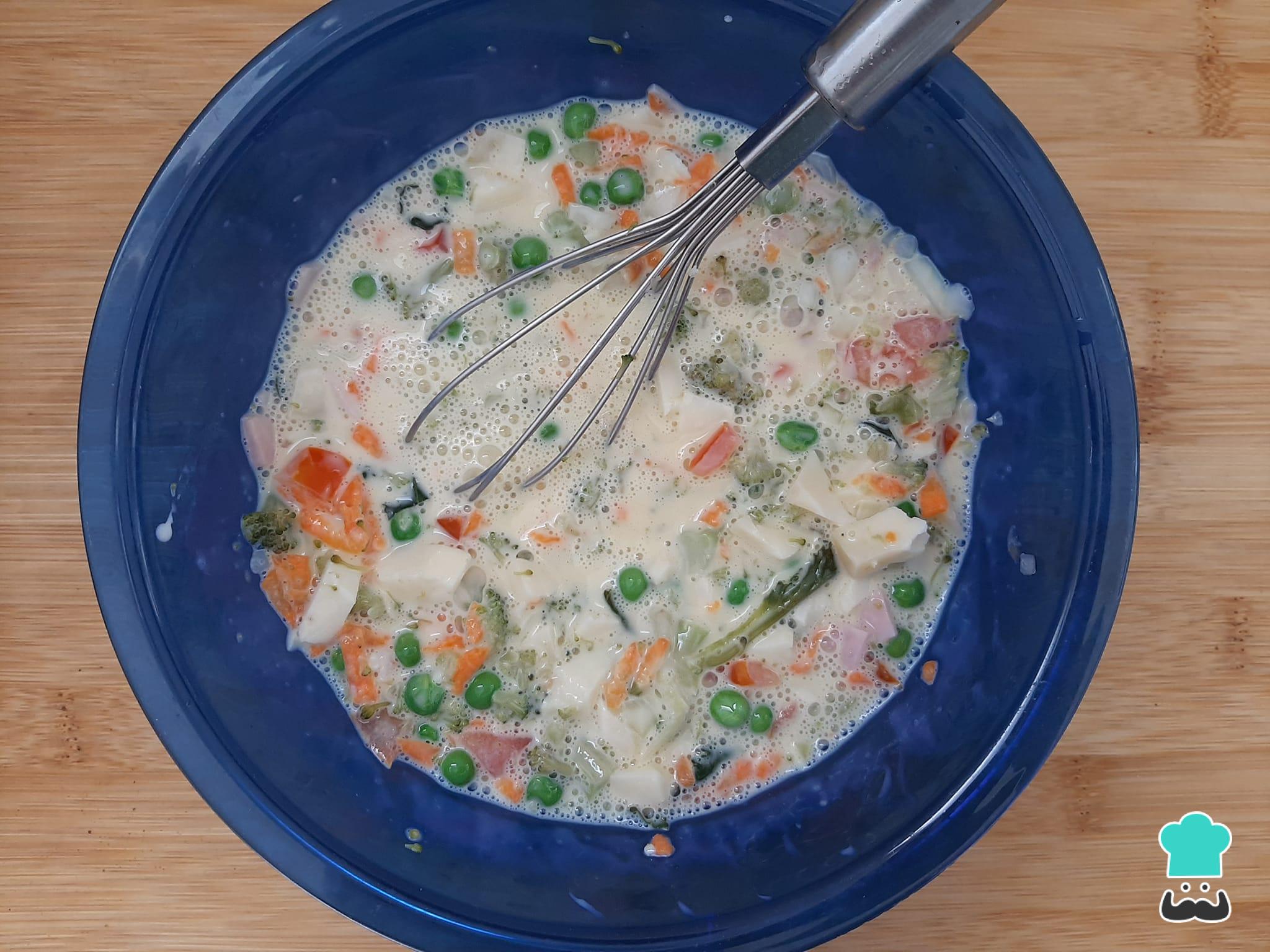 Quer saber como preparar esta receita aí na sua casa? Então não deixe de acompanhar agora aqui no TudoReceitas o passo a passo com fotos desta receita com o que tem na geladeira: omelete de forno com legumes e frios - que vai salvar seus dias corridos!