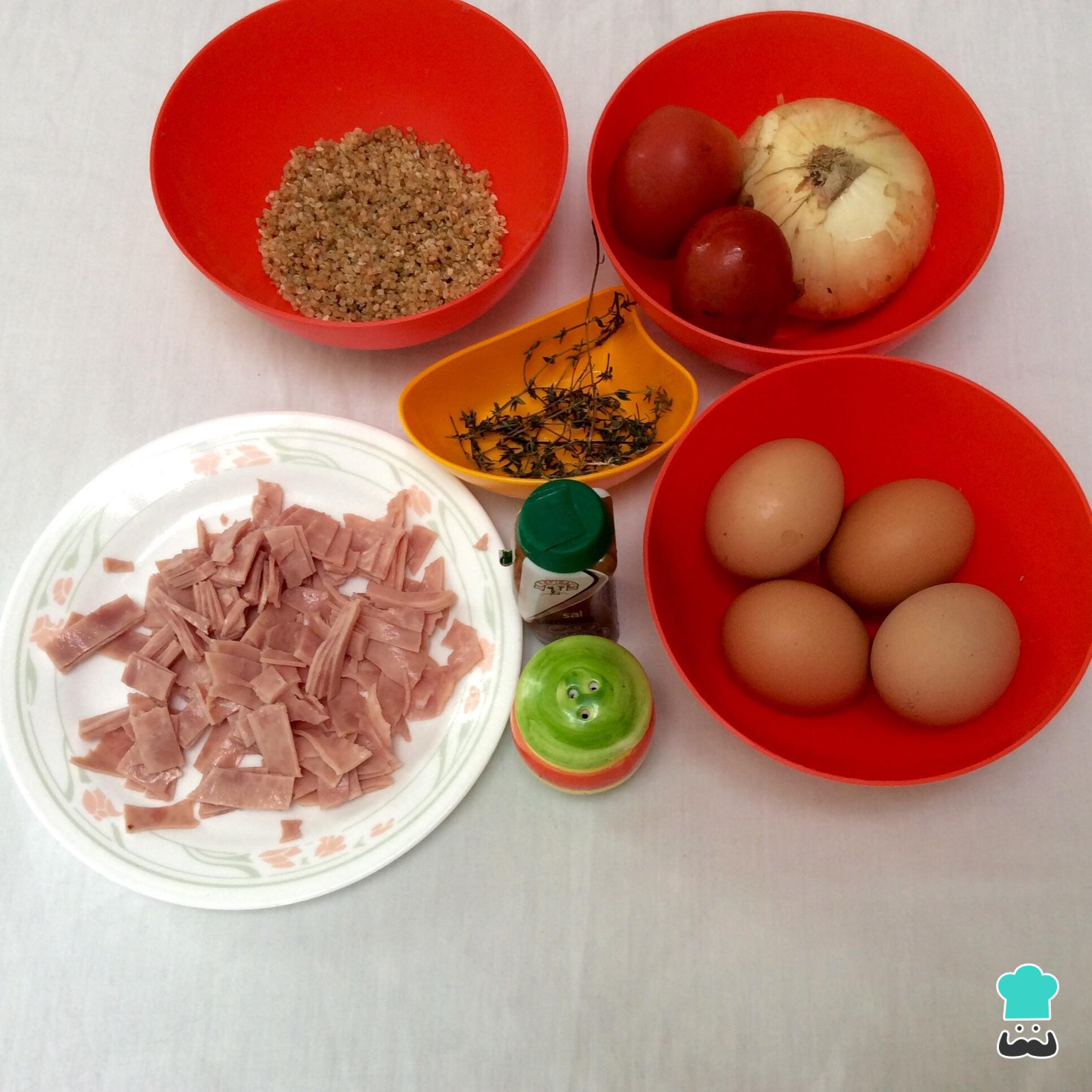 Para preparar esta saborosa omelete com quinoa, comece por reunir os ingredientes necessários.