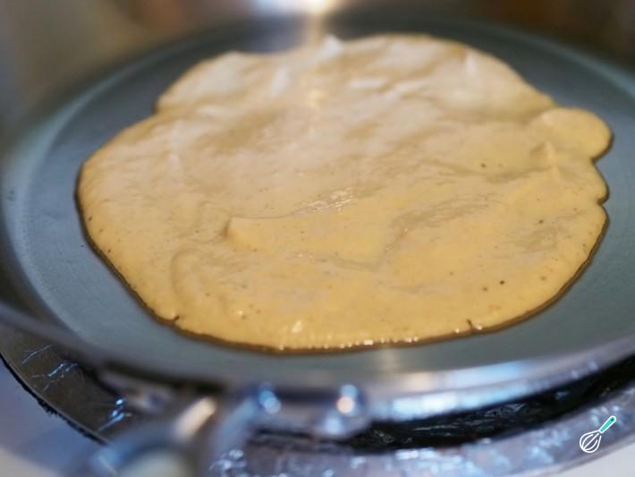 Dica: É fundamental nessa receita usar grão-de-bico seco e hidratado por 12 horas ou mais, caso contrário não conseguirá a consistência de omelete pretendida.