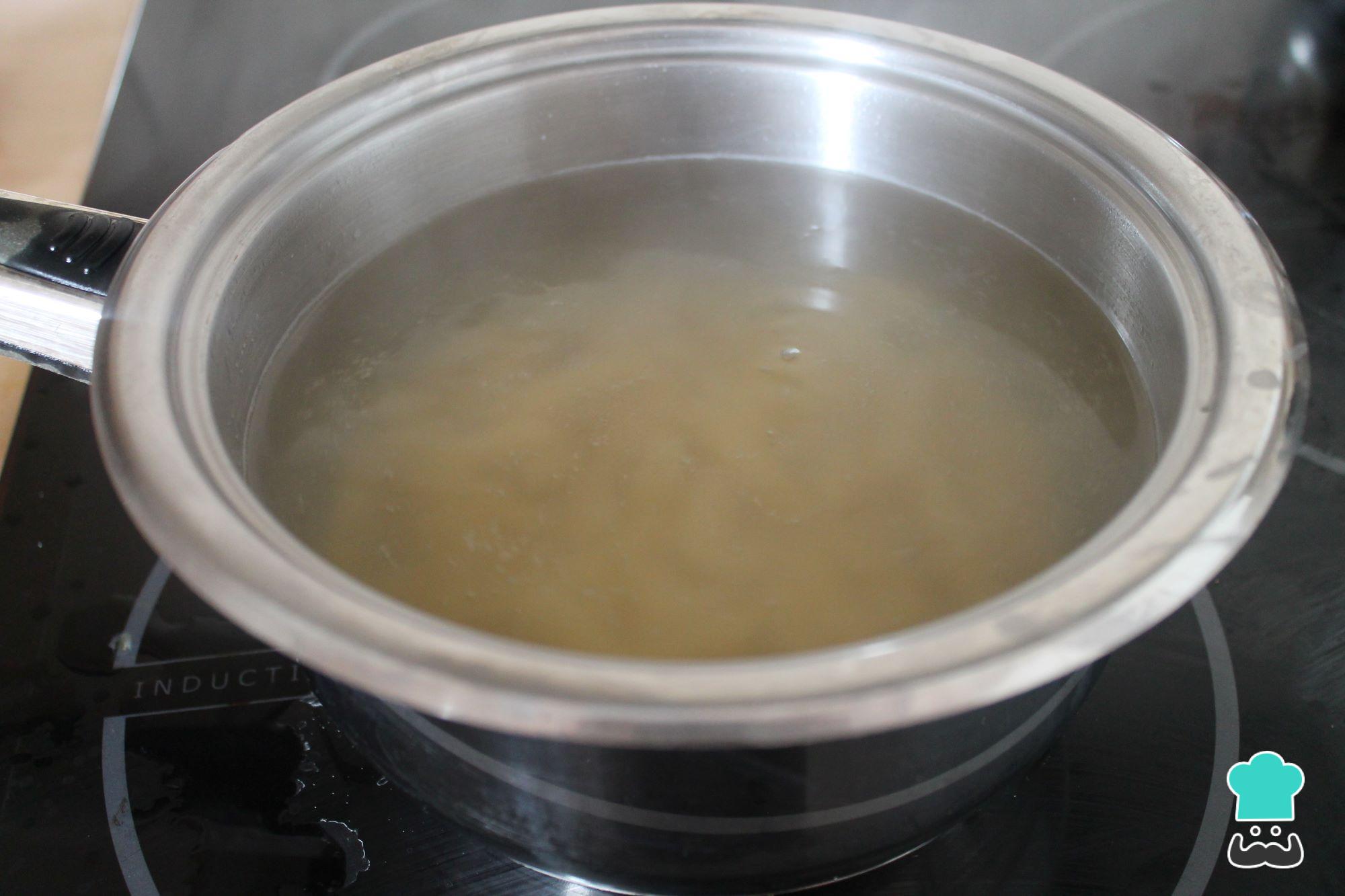 Para fazer a receita de omelete de macarrão, primeiro, ferva o macarrão caso você precise fazer uma quantidade para complementar aquela que esteja sobrando na geladeira. Coloque uma panela no fogo com água e um pouco de sal. Quando ferver, adicione o macarrão e cozinhe pelo tempo indicado pelo fabricante ou de acordo com o seu gosto.
