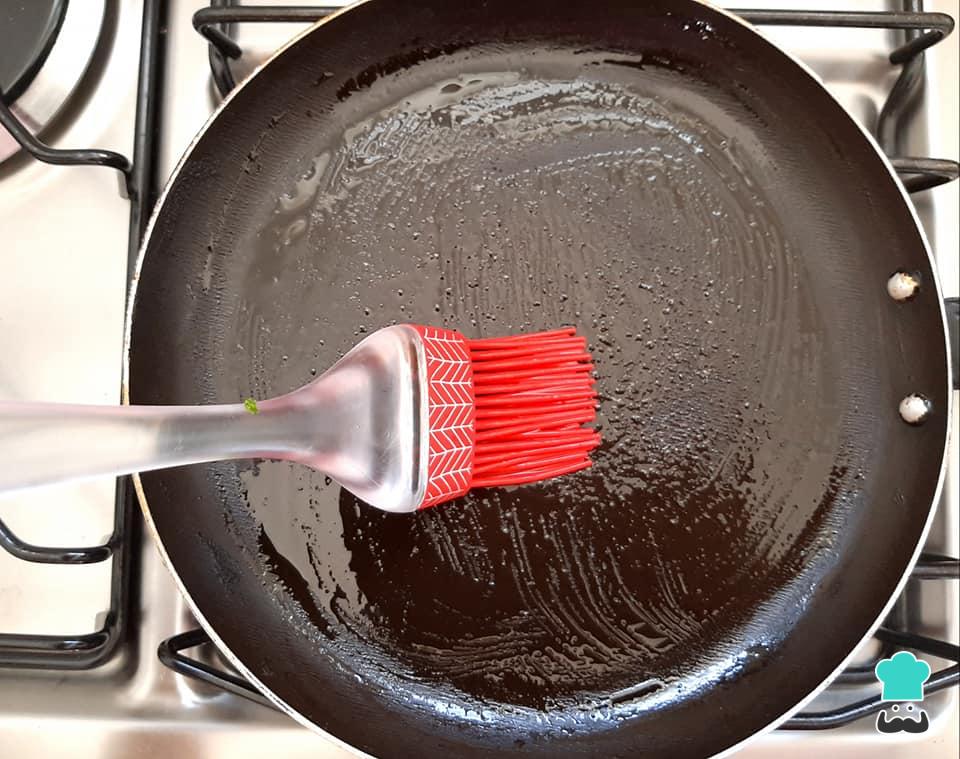 Aqueça uma frigideira média plana e unte com azeite de oliva ou óleo, para que a omelete não grude nela.
