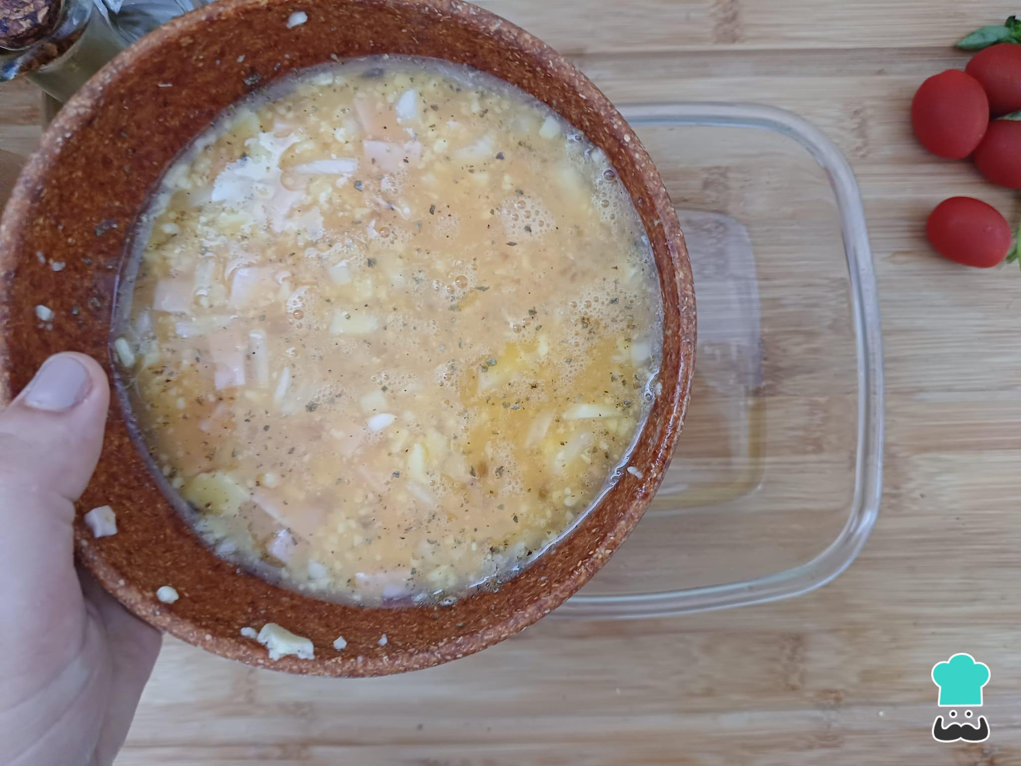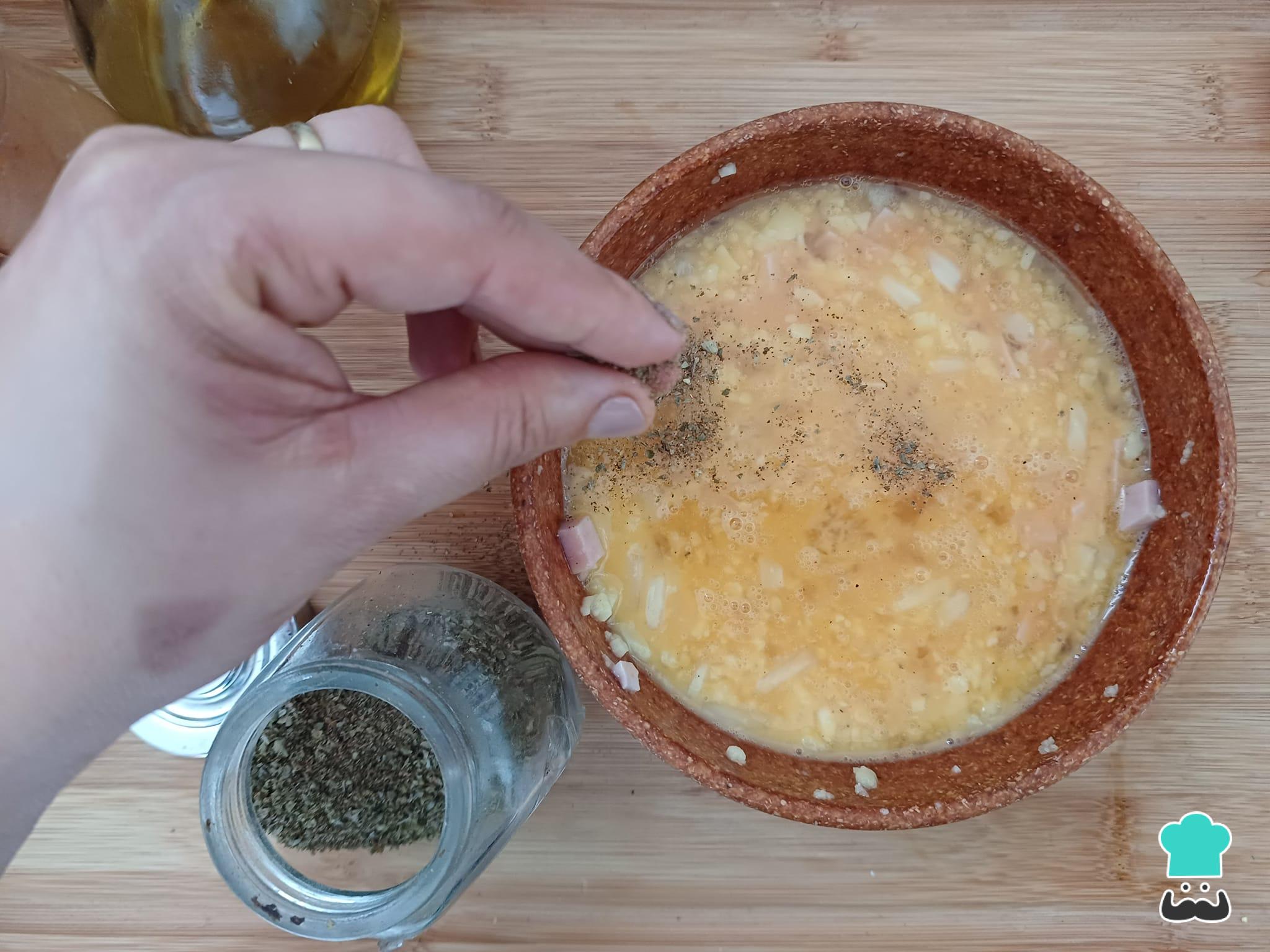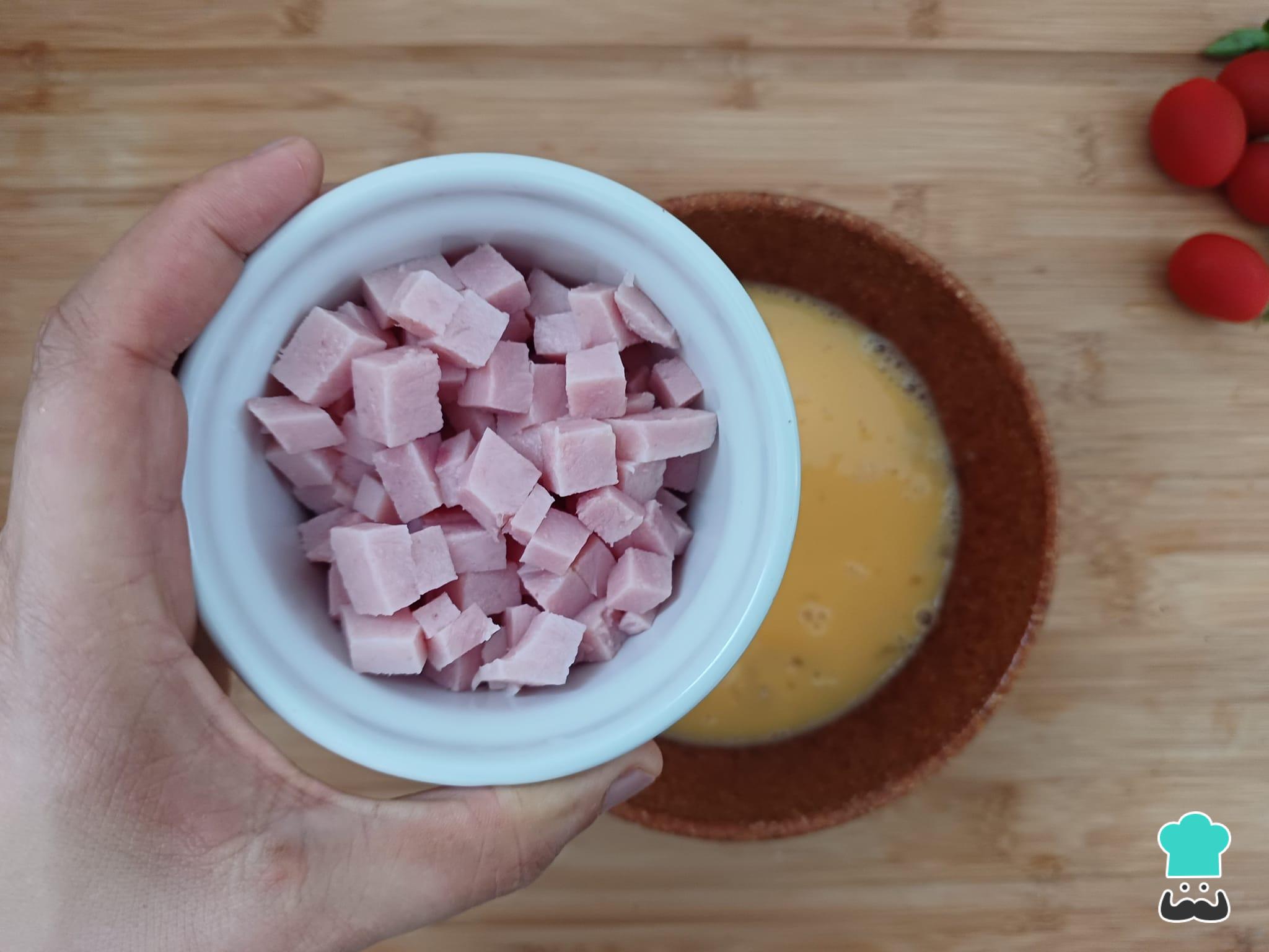 Adicione os demais ingredientes: presunto, queijo e cebola ralada.