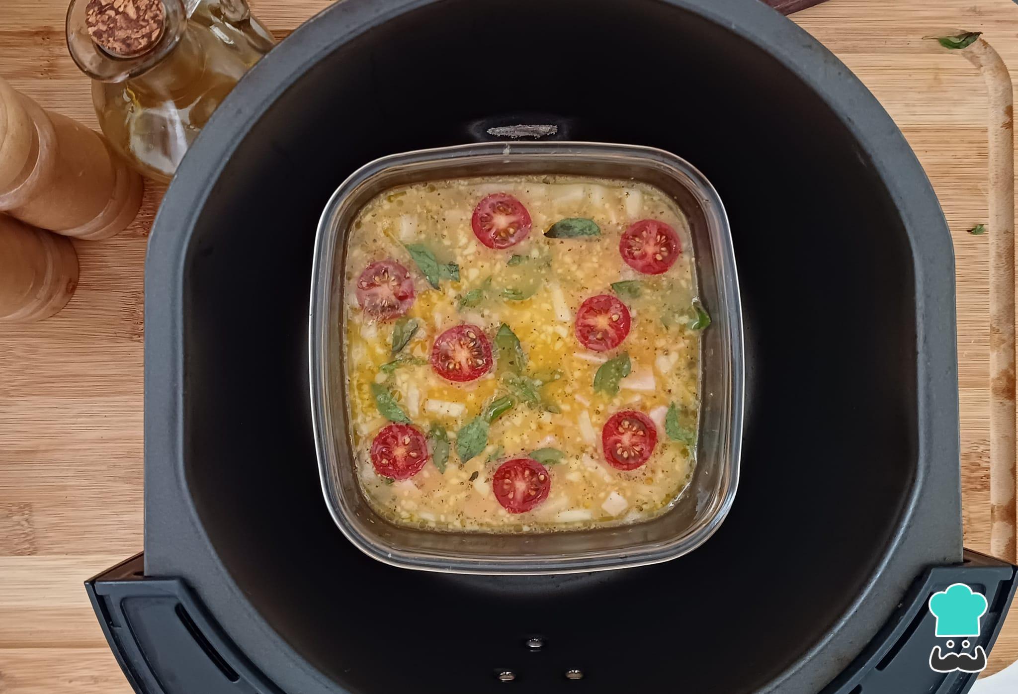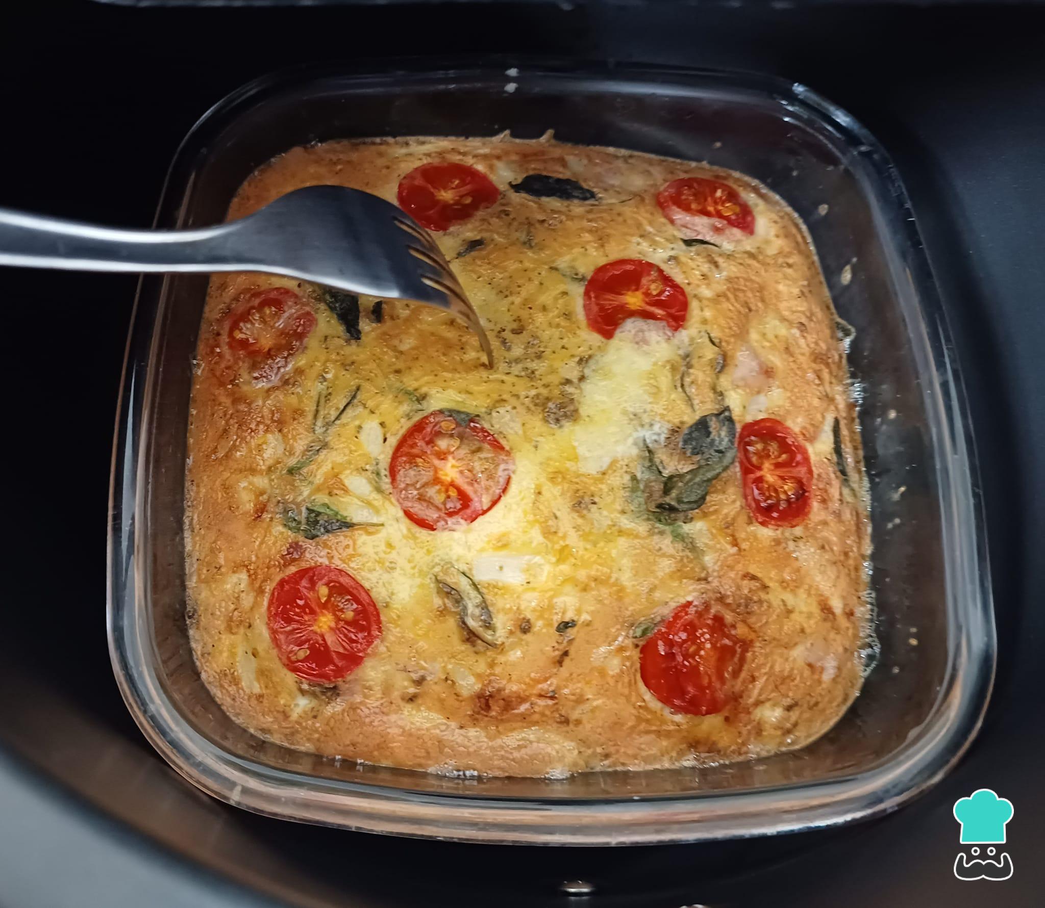 Reduza a temperatura da airfryer para 180 graus e asse a omelete por cerca de 15 minutos.