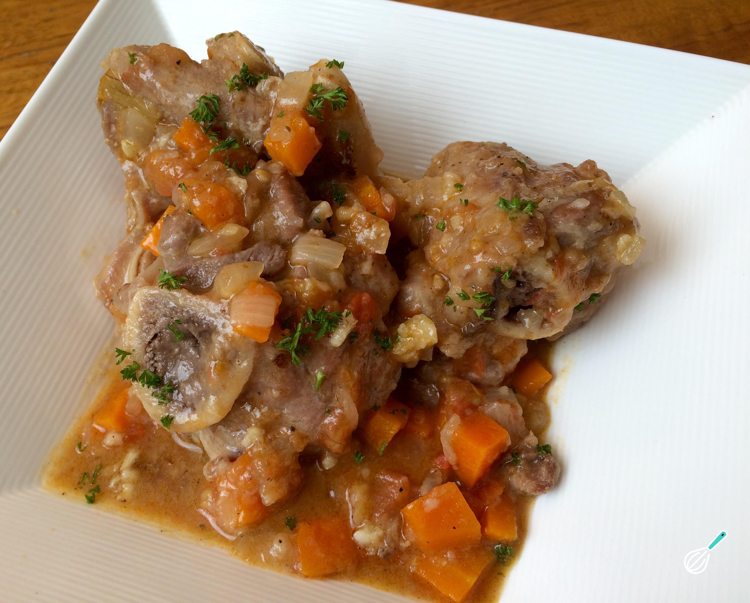 Finalmente, sirva seu ossobuco estufado à milanesa acompanhado de batata assada com ervas finas, e polvilhado com salsinha. Uma ótima sugestão para o almoço! Diga-nos o que achou desta receita caseira, e bom apetite!