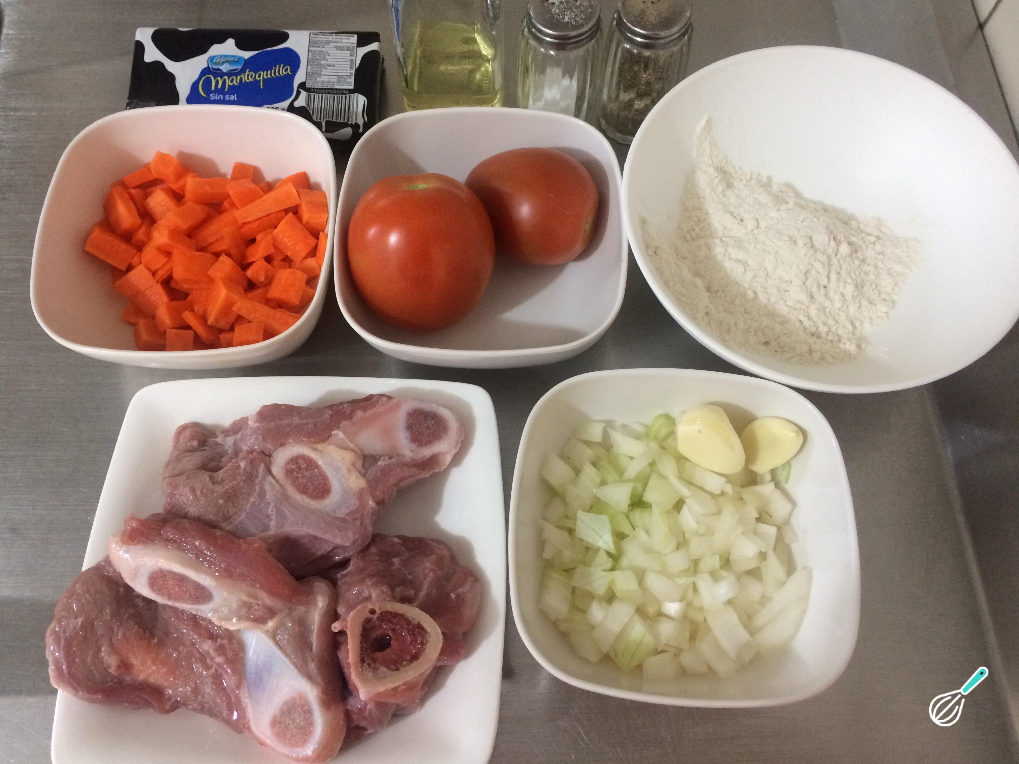 Antes de fazer esta receita, o primeiro passo é reunir todos os ingredientes. Para facilitar o preparo, descasque e pique a cenoura e a cebola.