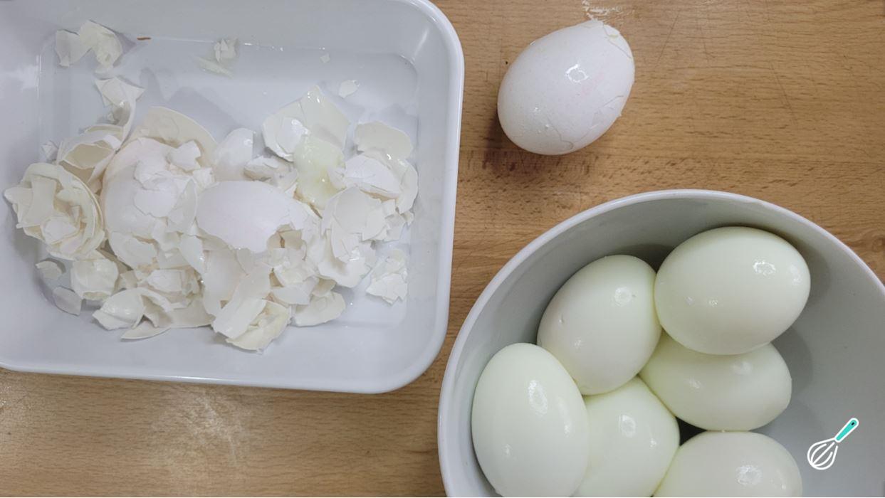 Depois de 10 minutos, escorra os ovos, passe em água fria, descasque e reserve.