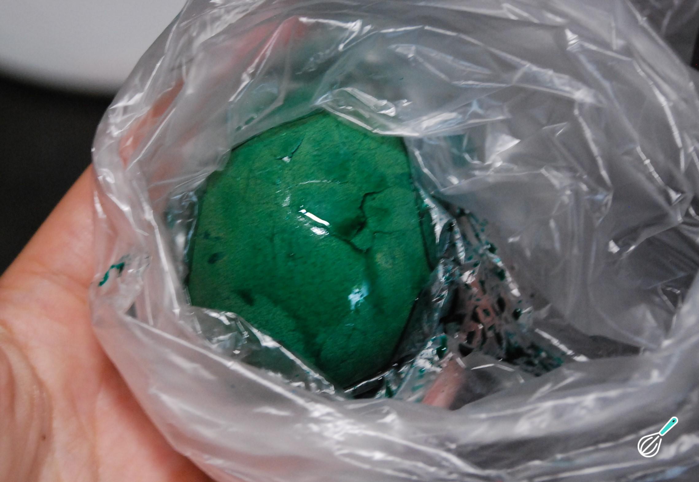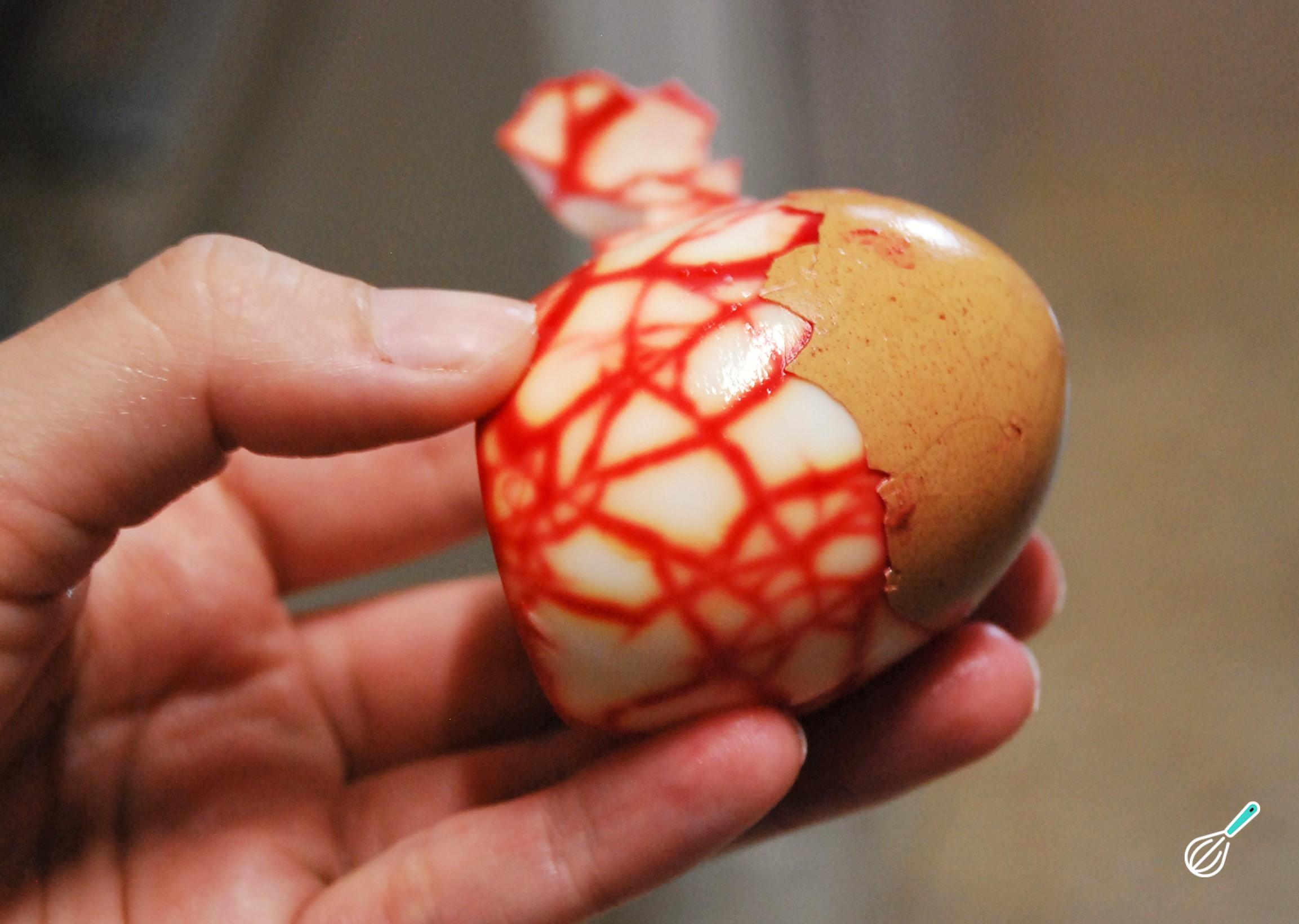 Depois de 15 minutos, você verá que o ovo está completamente pintado. Enxágue bem com água e deixe escorrer em um coador por alguns minutos até que esteja seco.