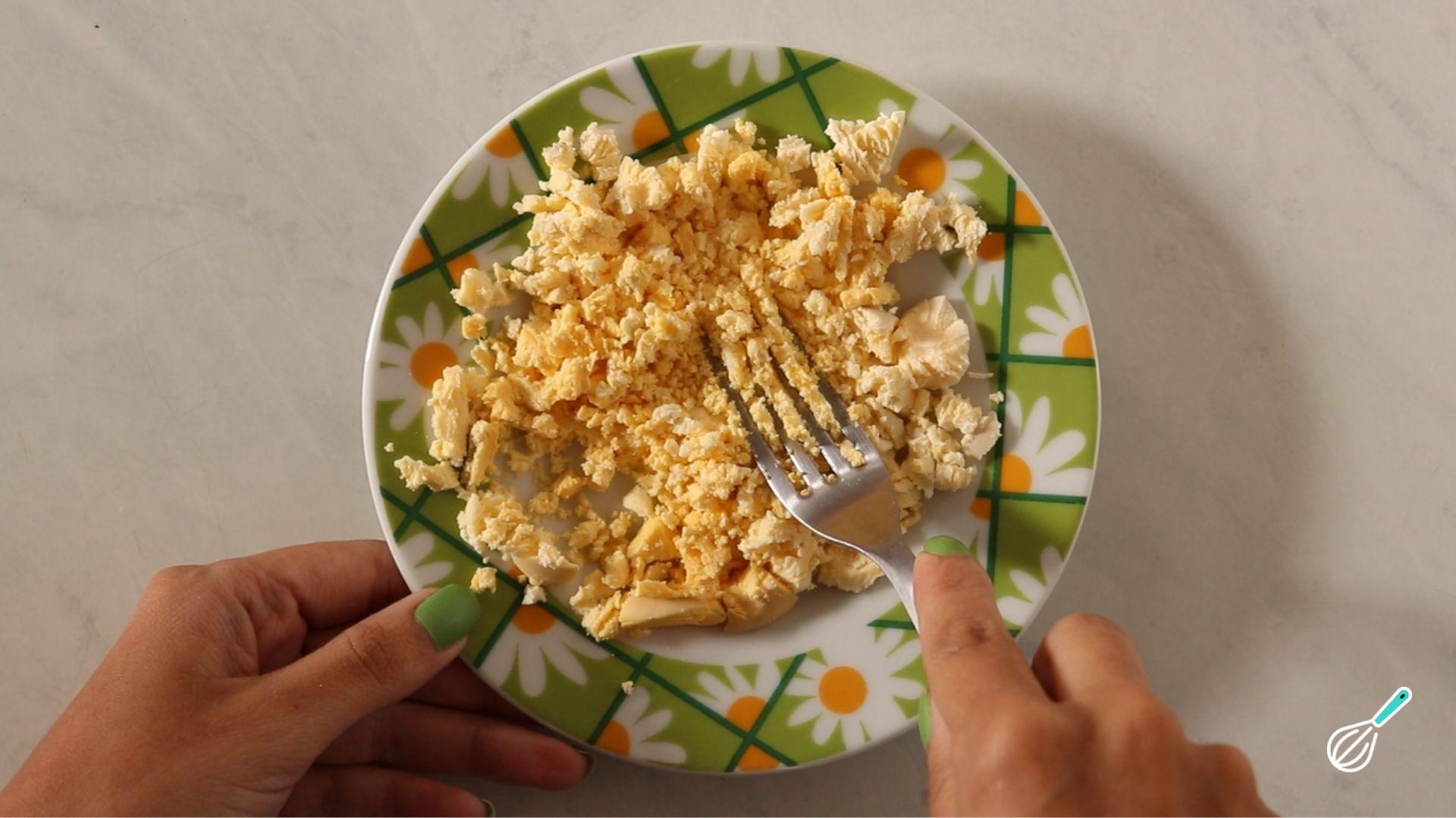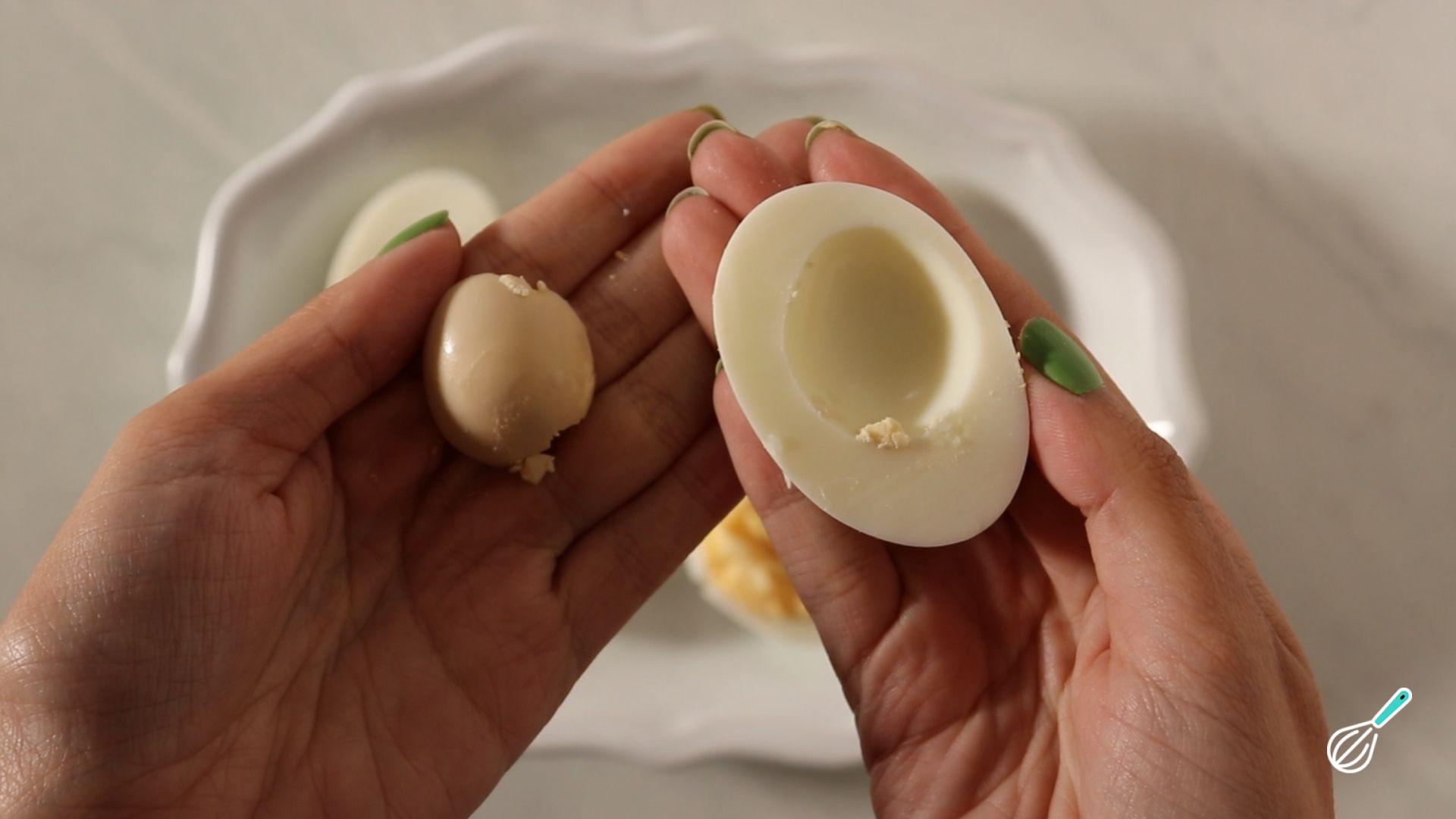 Corte ao meio, retire a gema e reserve as claras cozidas.