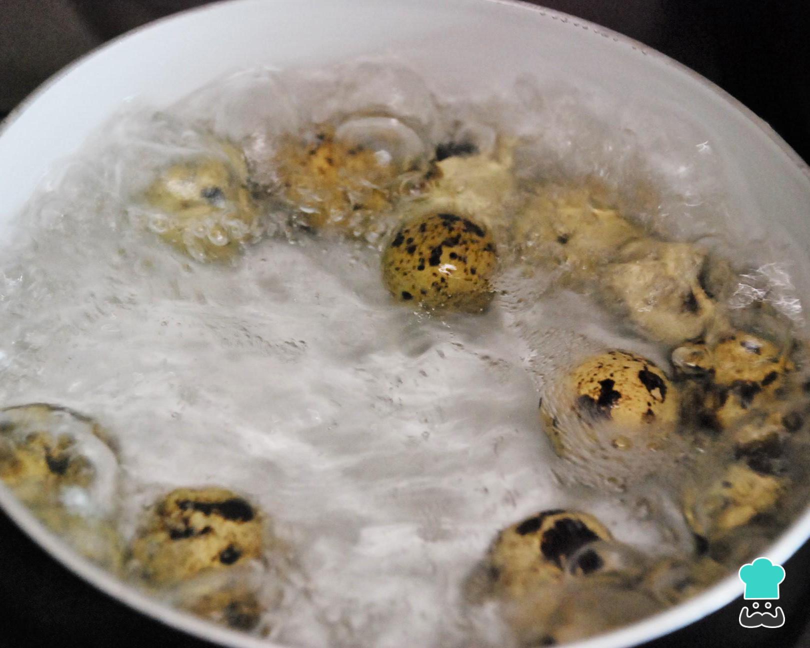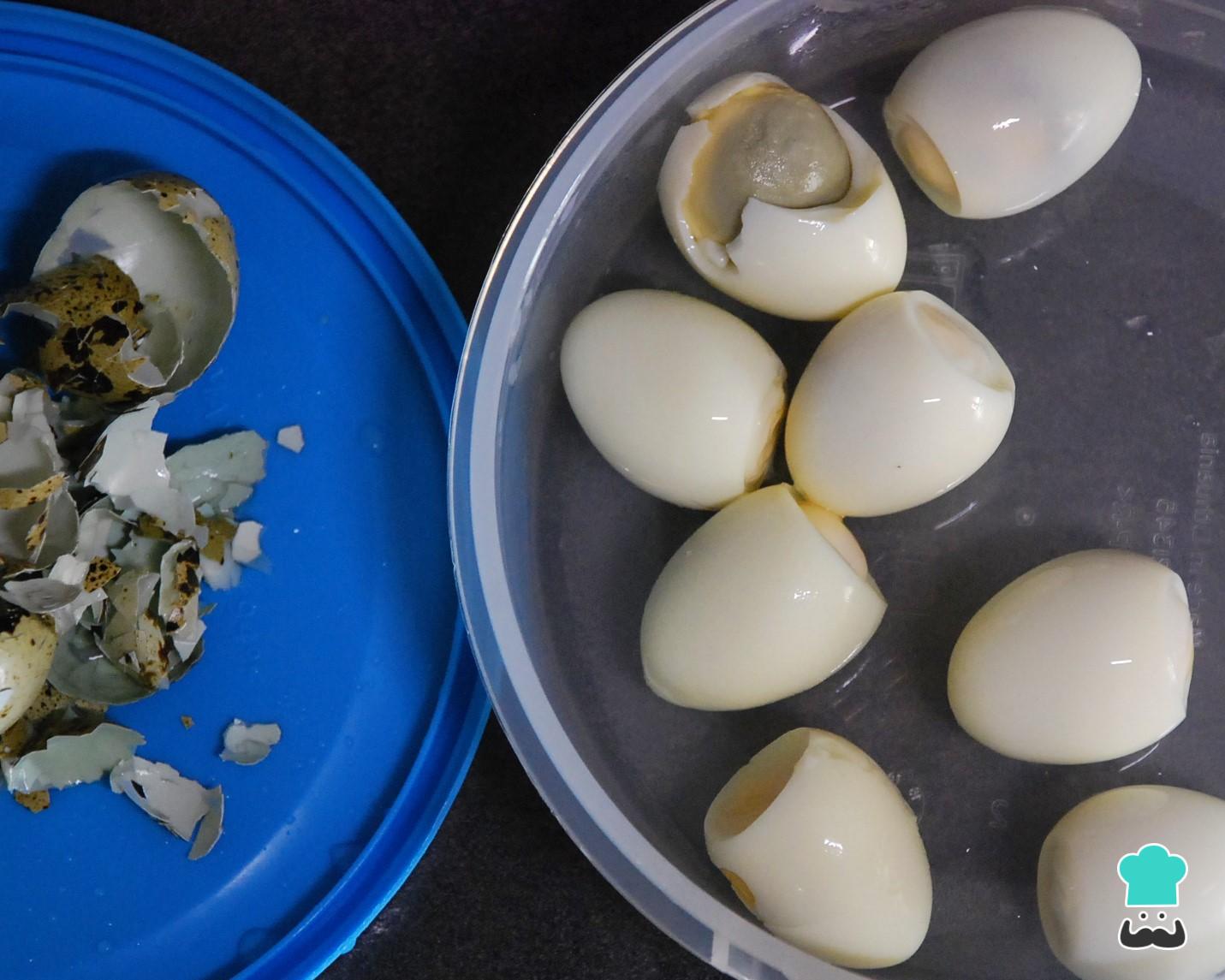 Dica: Lembre que a água deve ser em quantidade suficiente para cobrir bem os ovos de codorna. Para que fique mais fácil descascar os ovos, coloque 1 colher de sopa de vinagre na água.