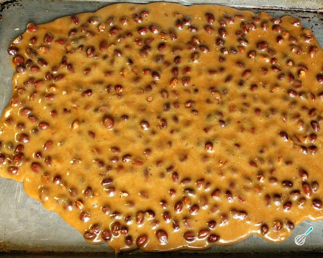 Espalhe a mistura sobre uma assadeira untada com um pouco de margarina ou manteiga e deixe esfriar até ficar sólida. Depois bata no processador ou quebre usando um martelinho, até obter pedacinhos pequenos, e reserve.
