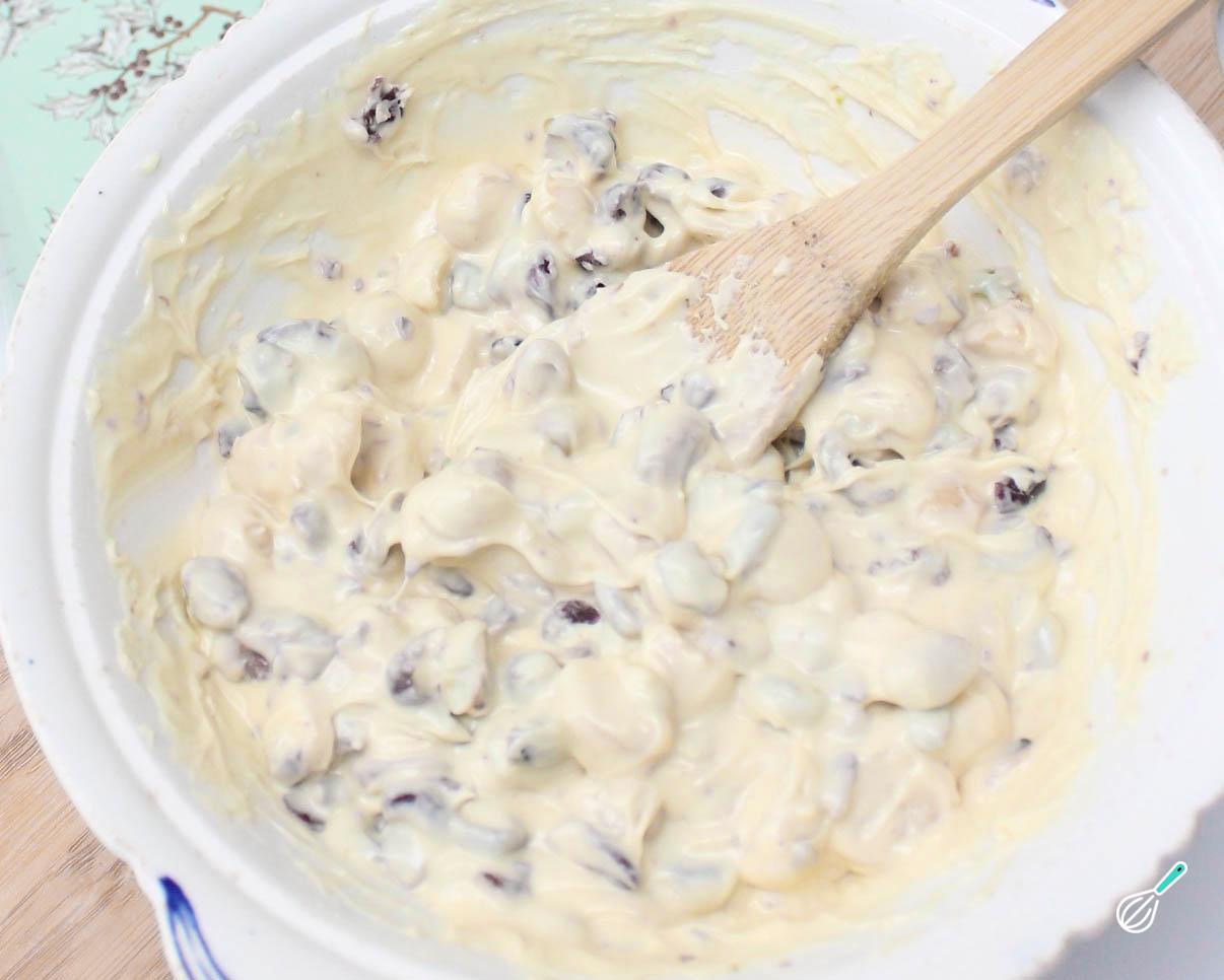 Dica: Lembre que o chocolate branco queima facilmente, por isso retire-o do fogo assim que começar esquentando.