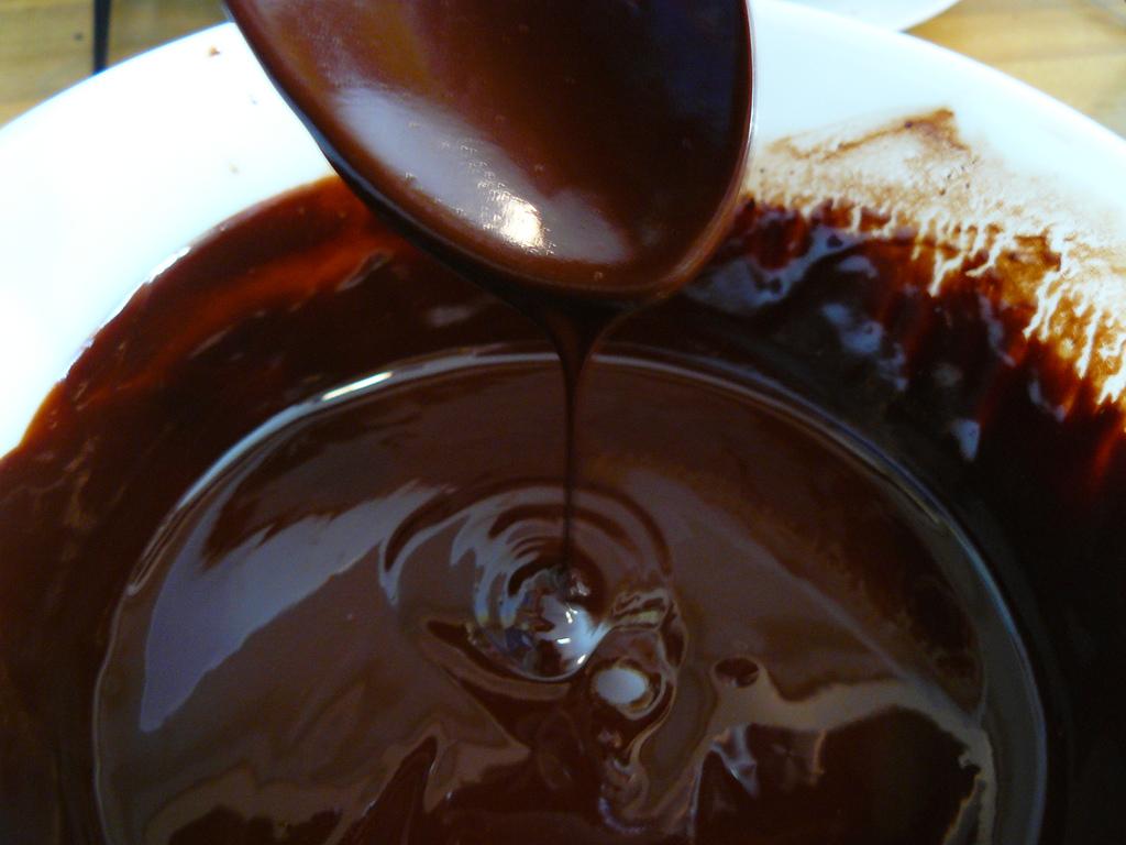 Dica: Coloque na geladeira a forma de chocolate virada para baixo para escorrer o excesso de chocolate. Se o chocolate meio amargo restante estiver ficando duro, volte a esquentar.