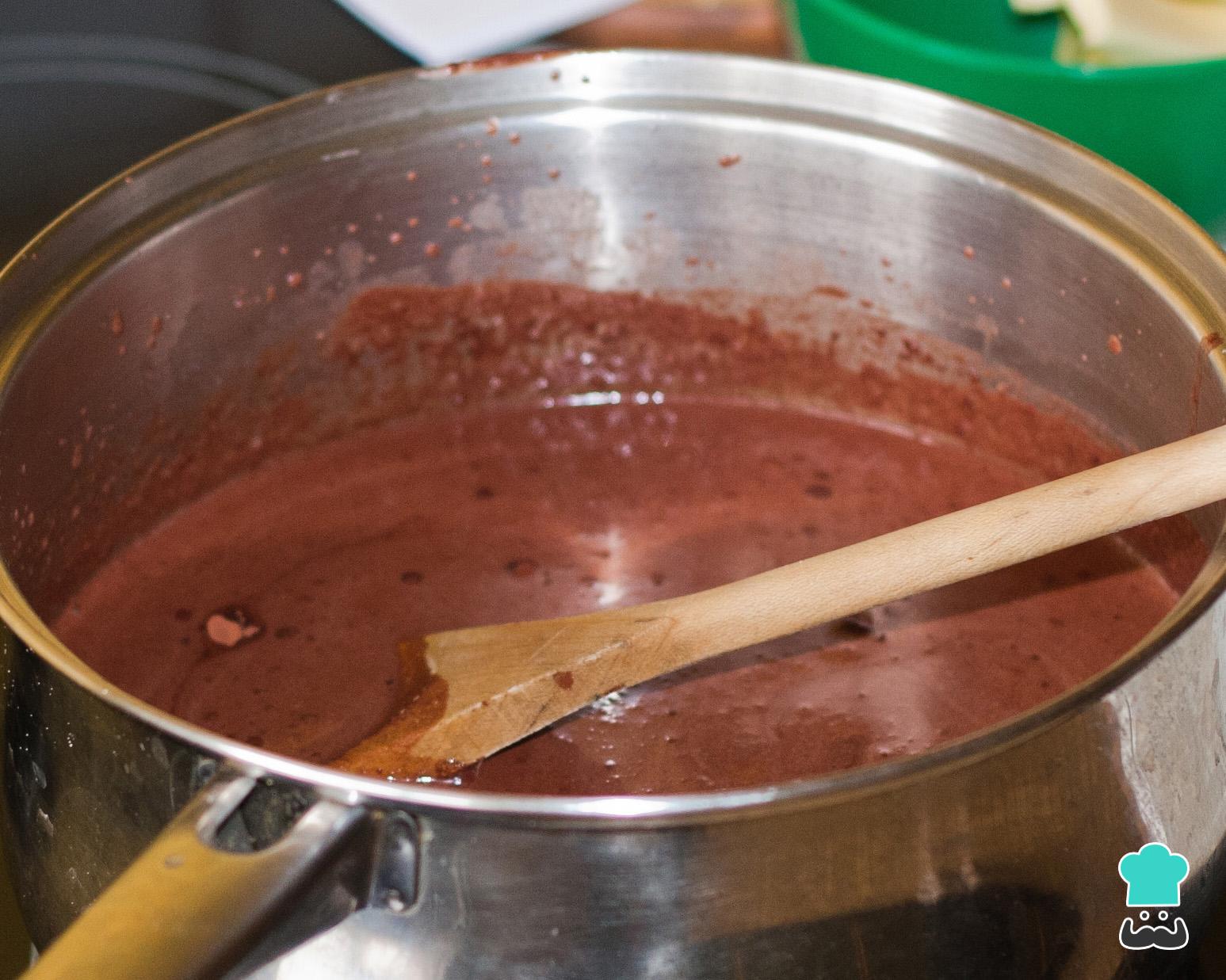 Prepare primeiro o brigadeiro, pois ele precisa esfriar. Para isso coloque o leite condensado e o Nescau em uma panela e leve ao fogo, mexendo sempre, até engrossar.