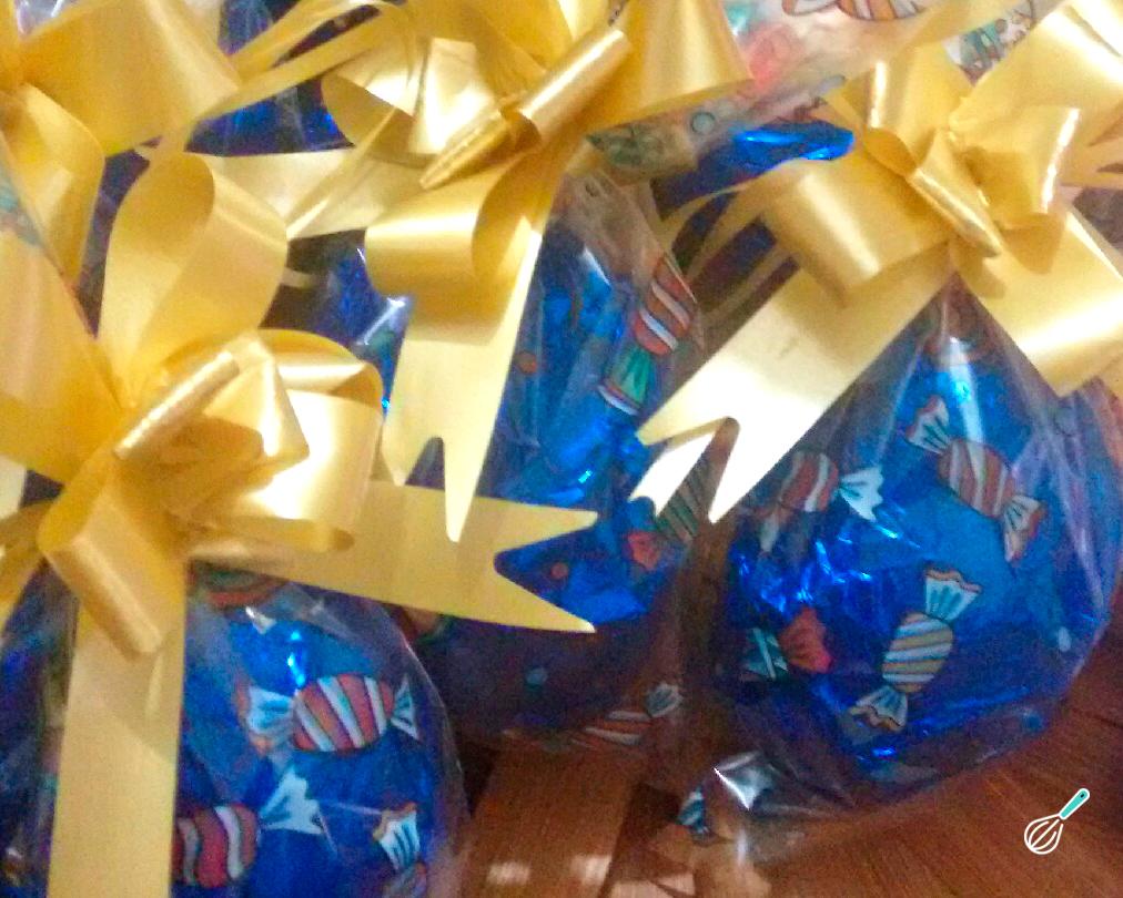 Desenforme os ovos de chocolate, coloque o recheio e feche, se necessário derretendo o chocolate nas laterais para grudar as duas metades. Embale com o papel da preferência e um laço bonito.