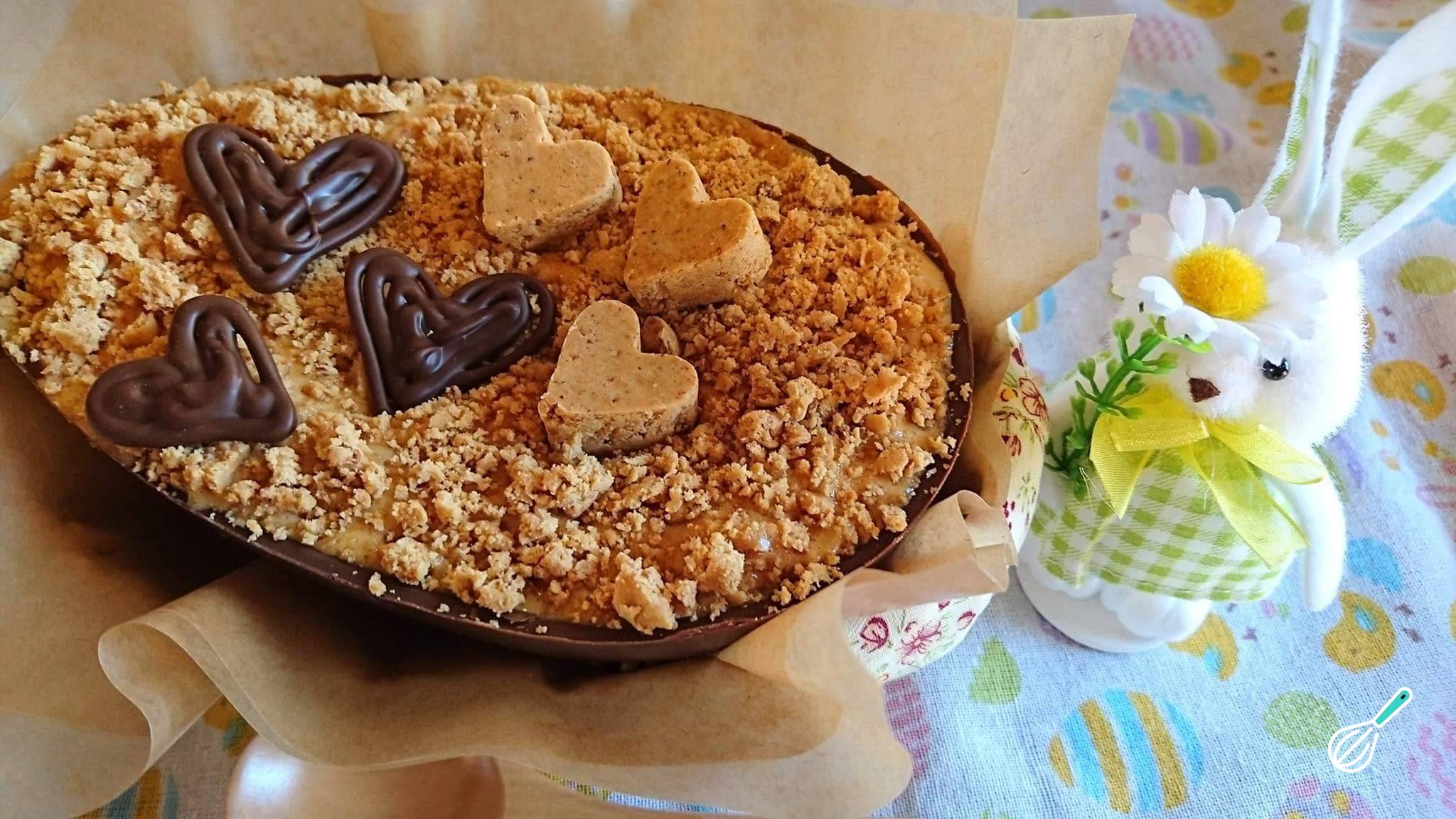 Reserve seu ovo de Páscoa trufado de paçoca na geladeira até ao momento de servir e decore a gosto (eu pinguei chocolate derretido sobre o ovo, formando corações, e acrescentei algumas paçocas).