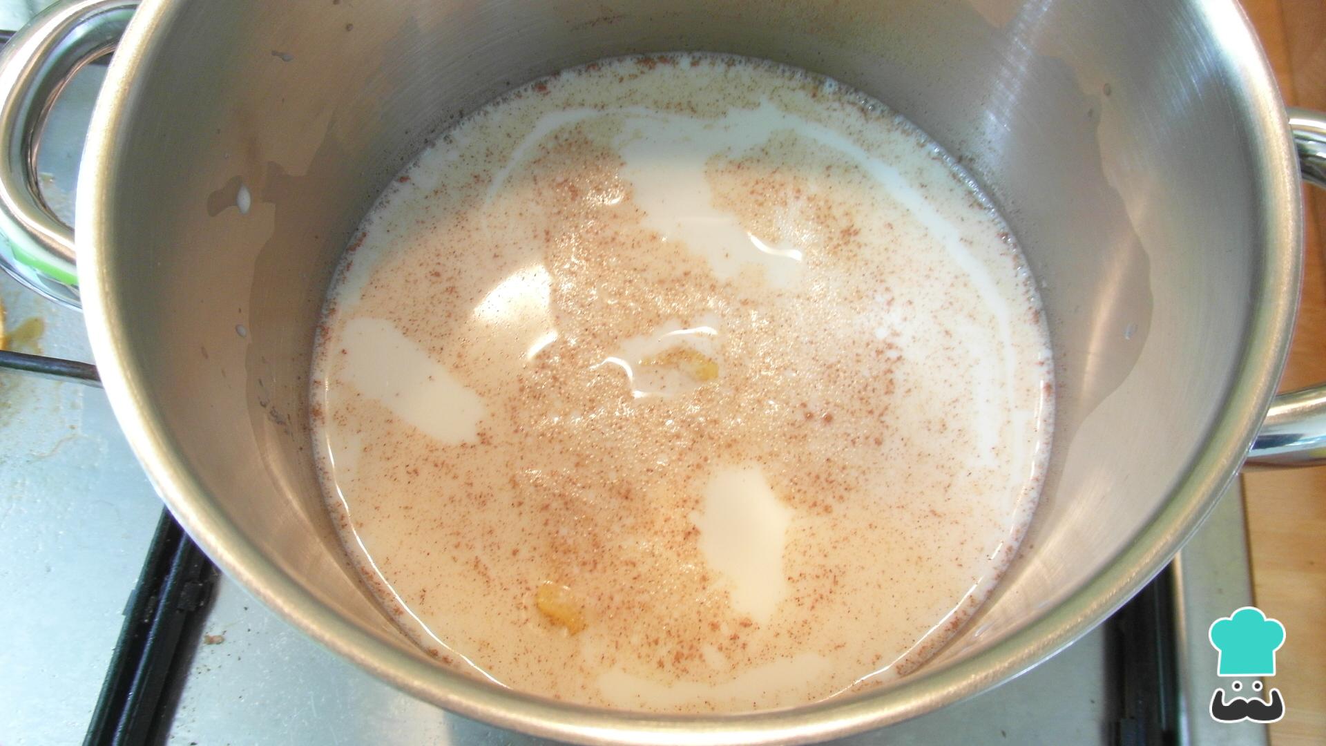 Leve ao fogo médio uma panela larga com 2/3 do leite, o açúcar, uma raspa de limão e o pau de canela ou canela em pó a gosto.