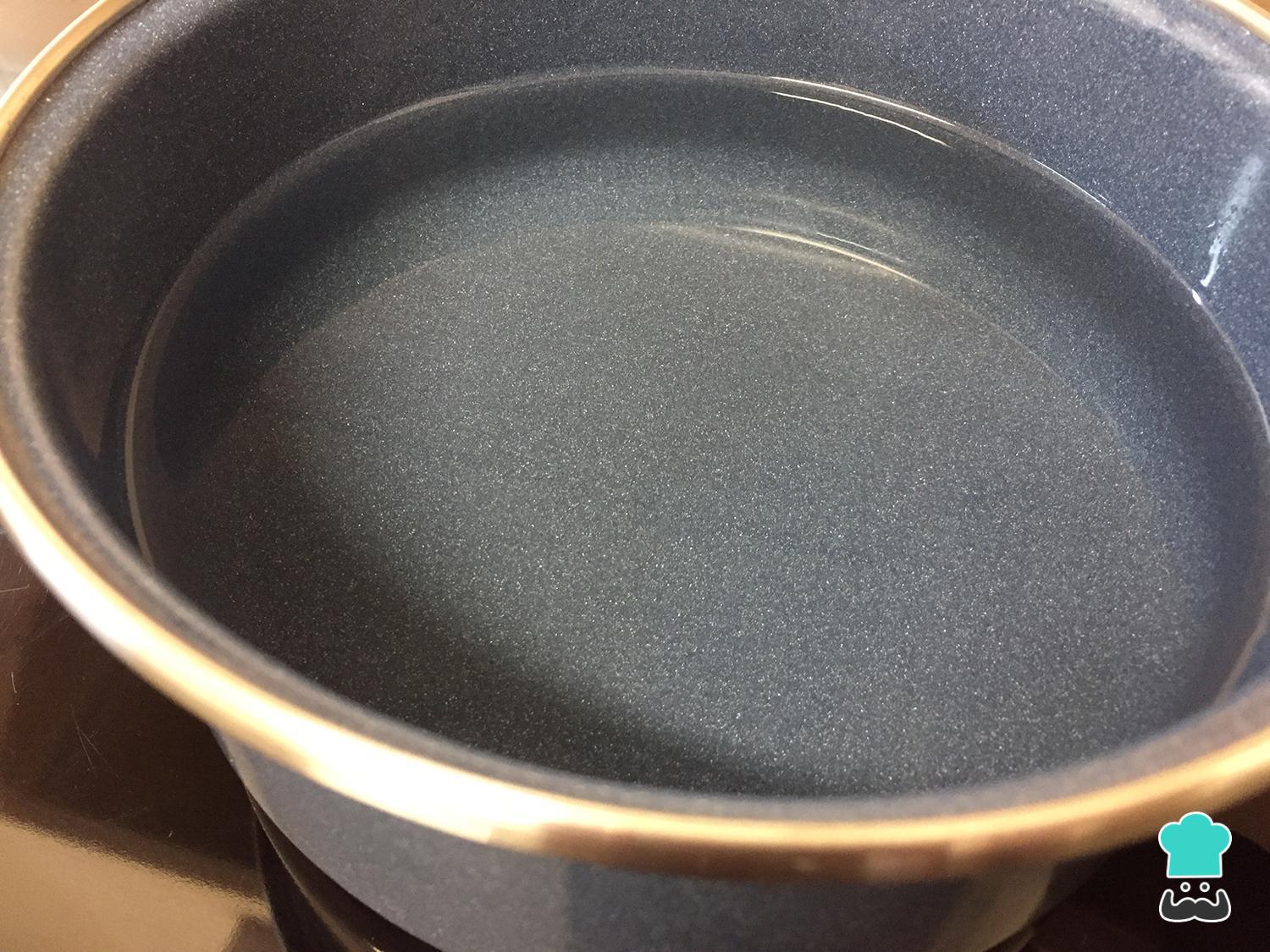 Coloque no fogo uma panela com água para esquentar. Dependendo da quantidade de ovos moles que você quer fazer poderá ser necessário adicionar mais ou menos água, já que o ovo deve ficar totalmente submerso na água.