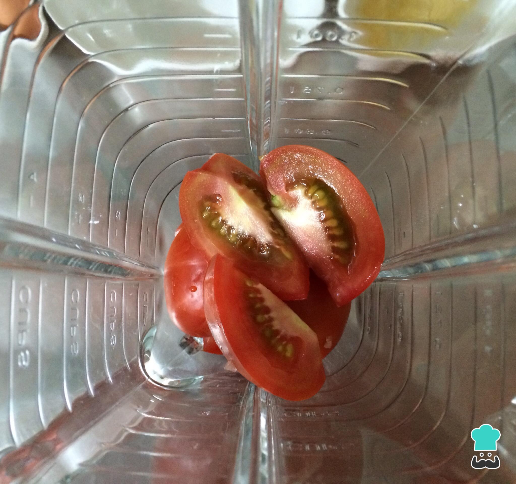 Lave os tomates, retire a rama, corte em pedaços e bata no liquidificador durante alguns minutos, para conseguir o molho à napolitana.