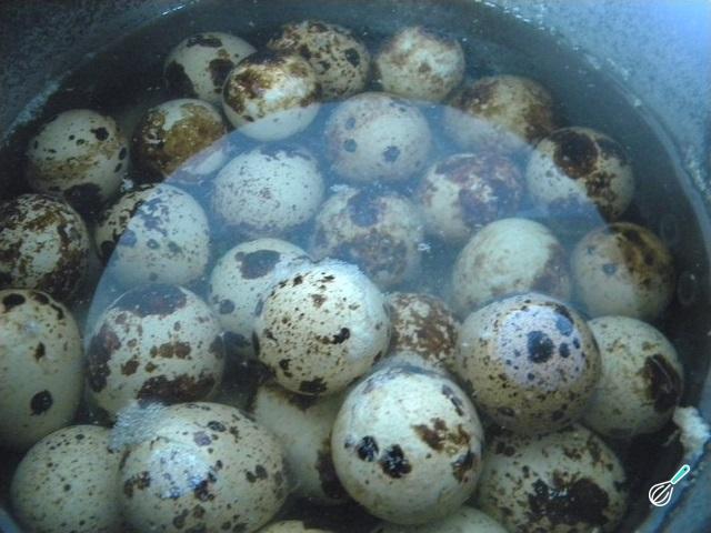 Para fazer ovo de codorna em conserva, comece por cozer os ovos em água fervente por 10-15 minutos. Depois retire, deixe esfriar e descasque.