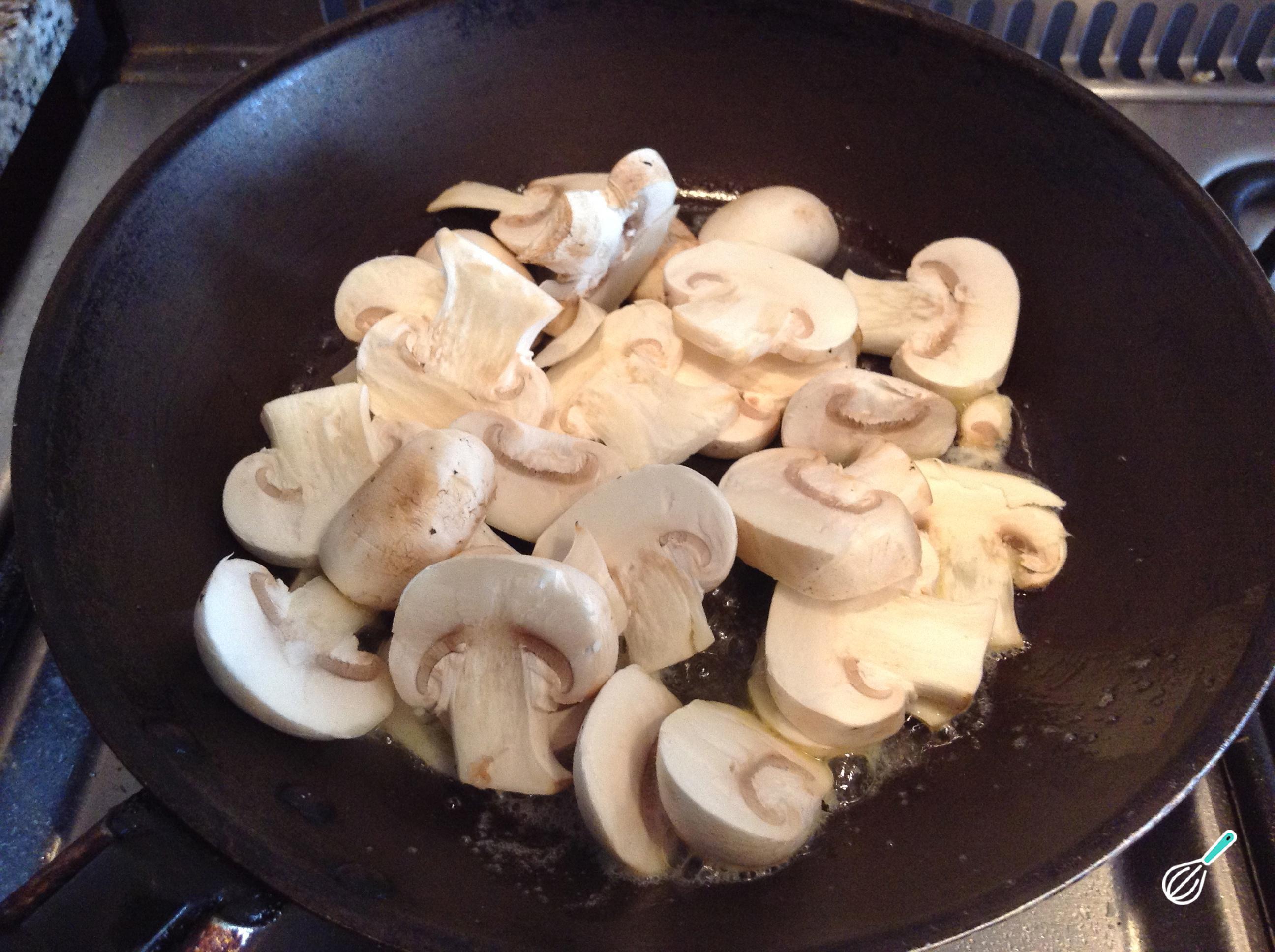 Em uma frigideira média adicione manteiga ou margarina e deixe derreter, adicione os cogumelos e refogue por uns 10 minutos. Tempere com sal e pimenta a gosto.